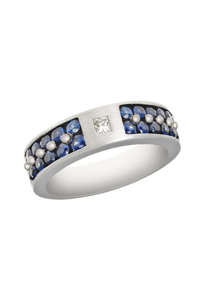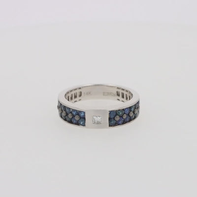 Men's 14K White Gold Blue Sapphire and Diamond Ring, 1.69 TCW