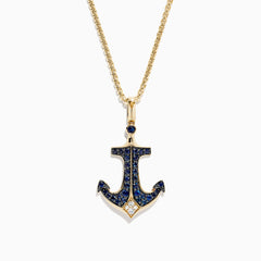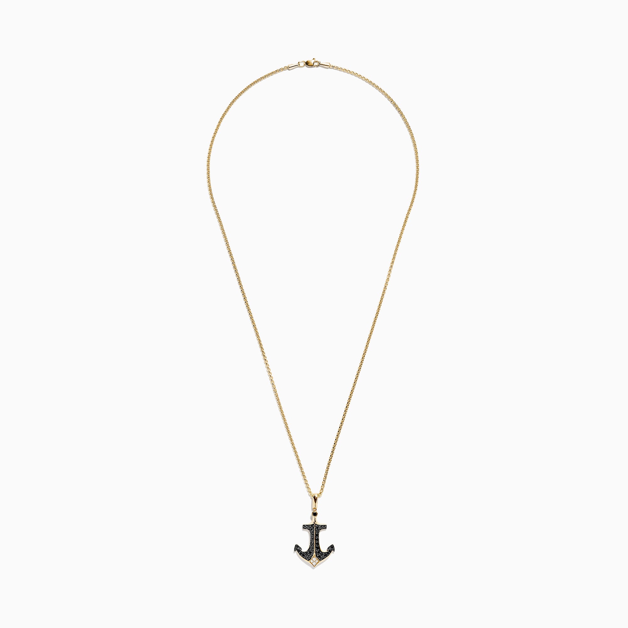 Effy Men's 14K Yellow Gold Black and White Diamond Anchor Pendant, 0.73 TCW