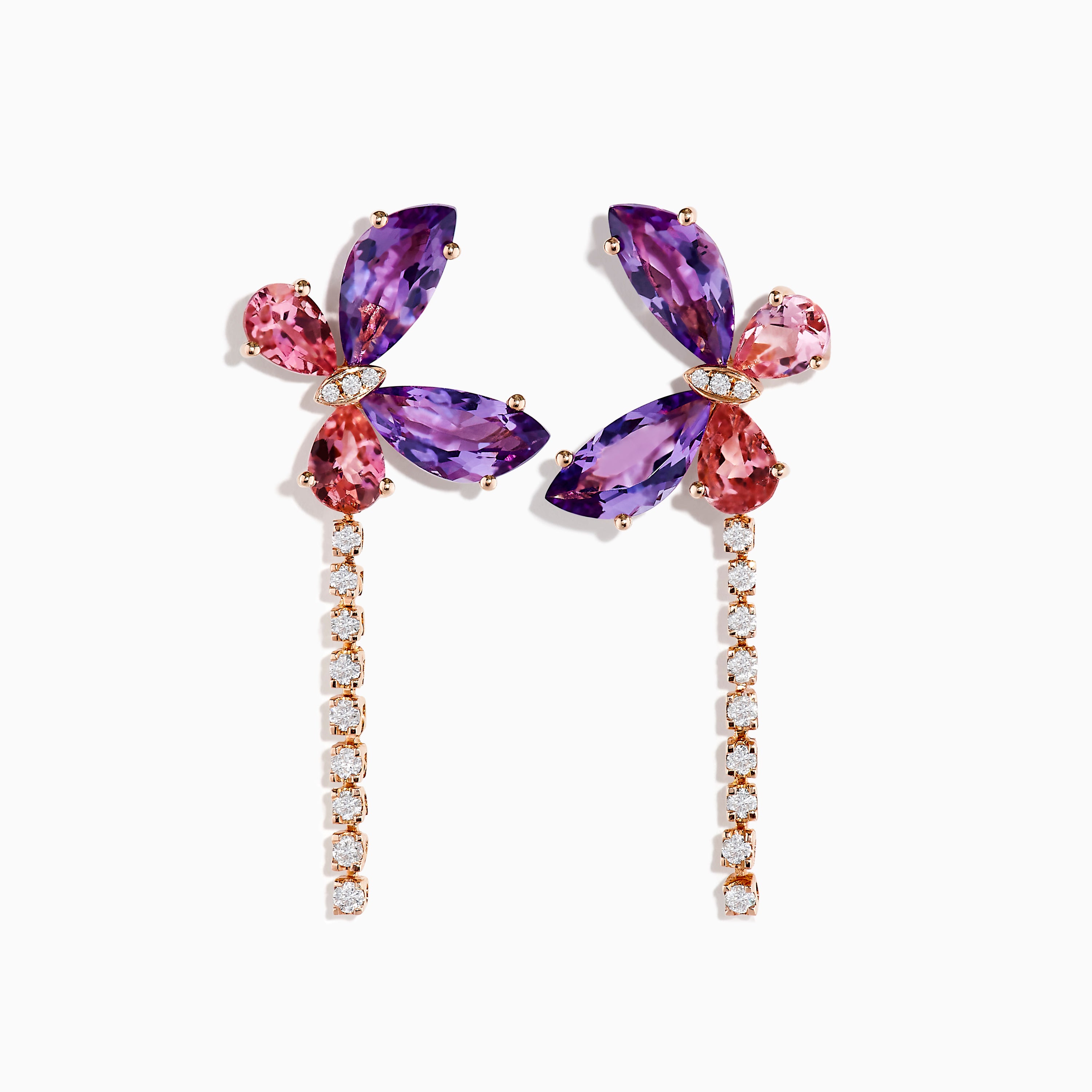 Effy 14K Rose Gold Multi-Stone and Diamond Butterfly Drop Earrings