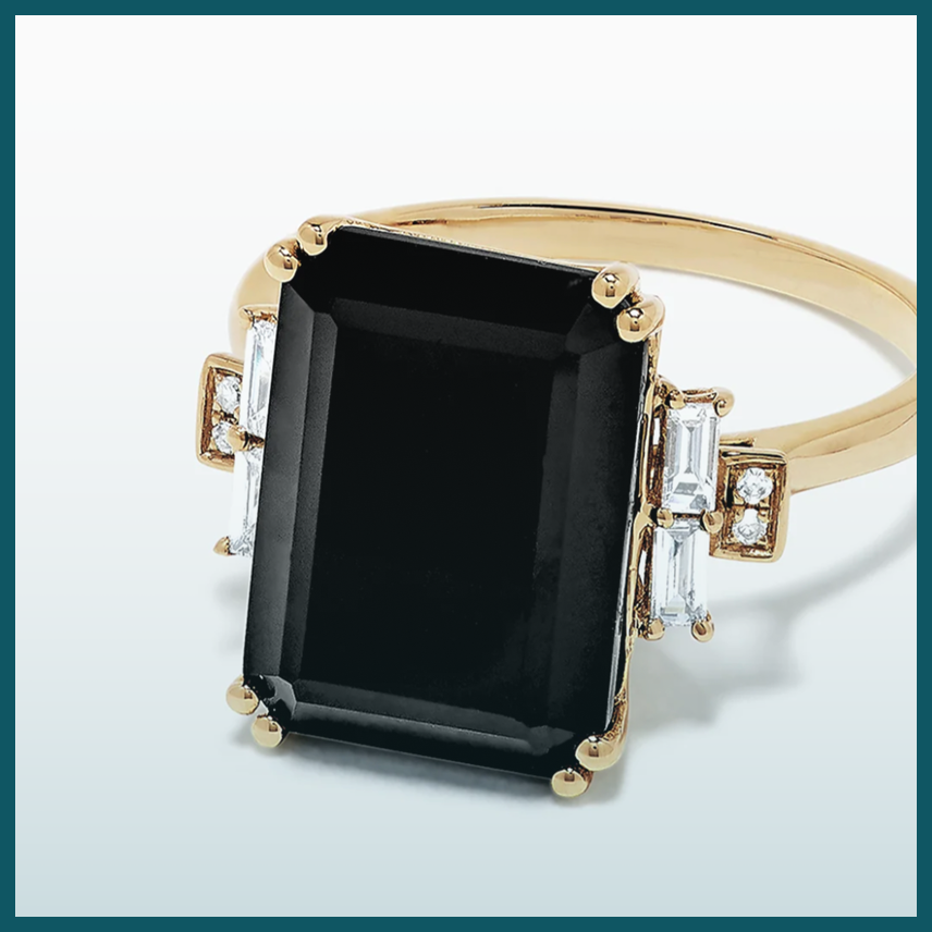 Sculptural onyx and gold statements.