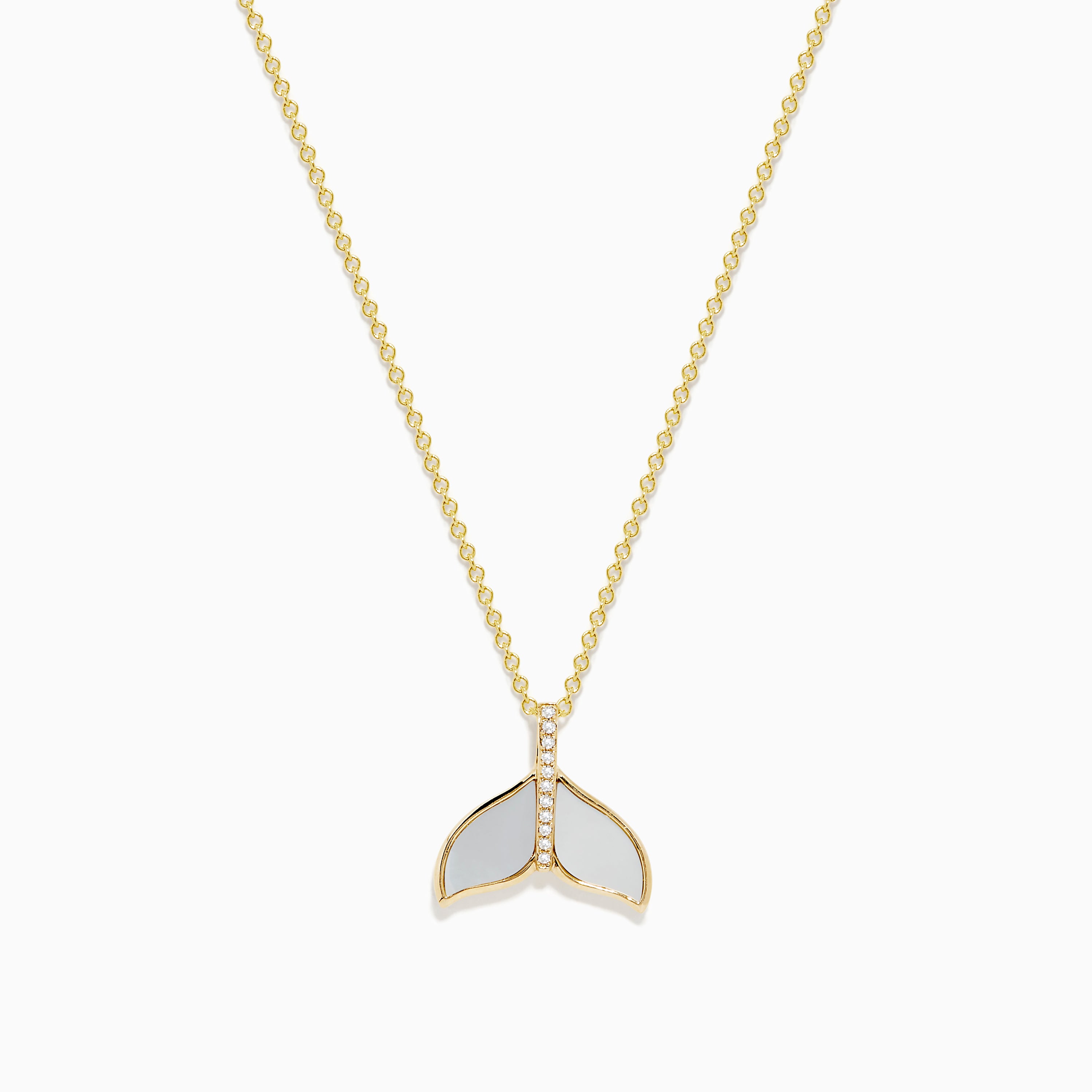 Effy Seaside 14K Yellow Gold Mother of Pearl & Diamond Whale Tail Pendant