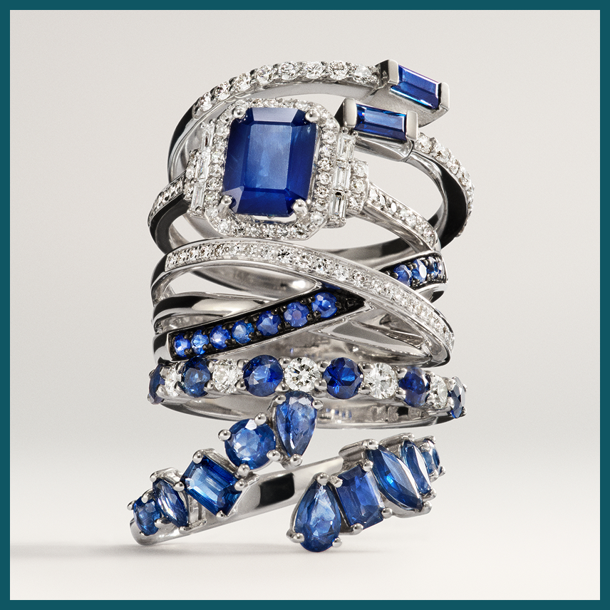 Exquisite sapphires and diamonds define elegance.
