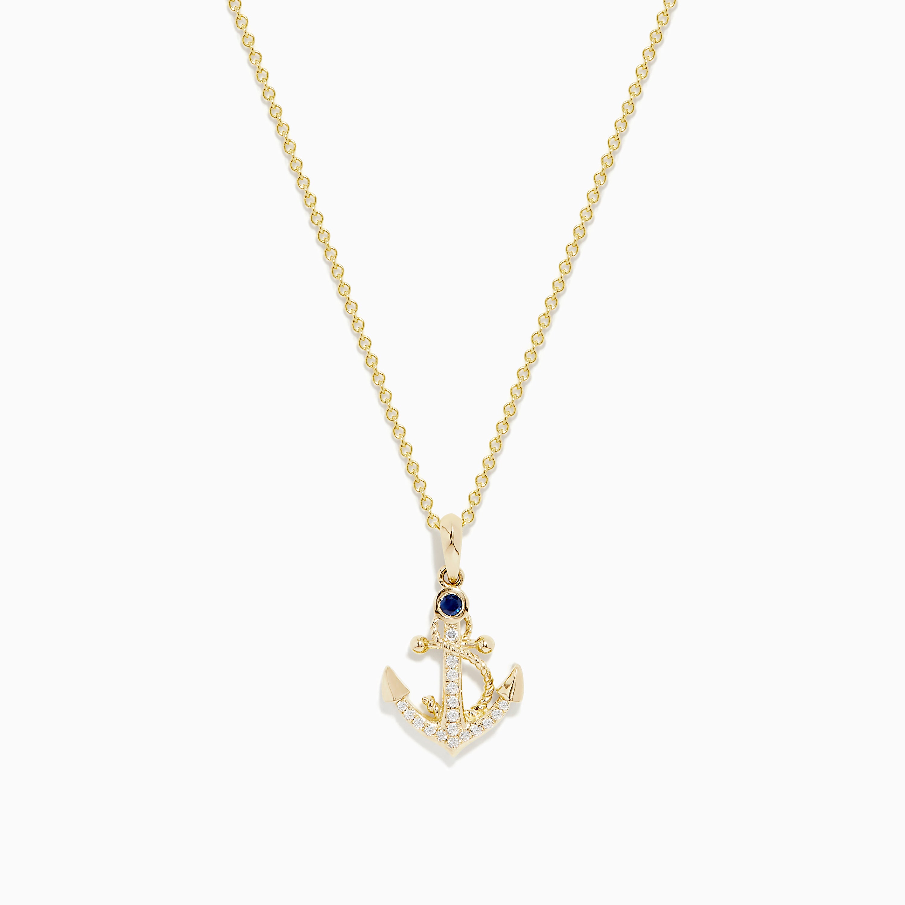 Effy Seaside 14K Yellow Gold Diamond and Sapphire Anchor Pendant
