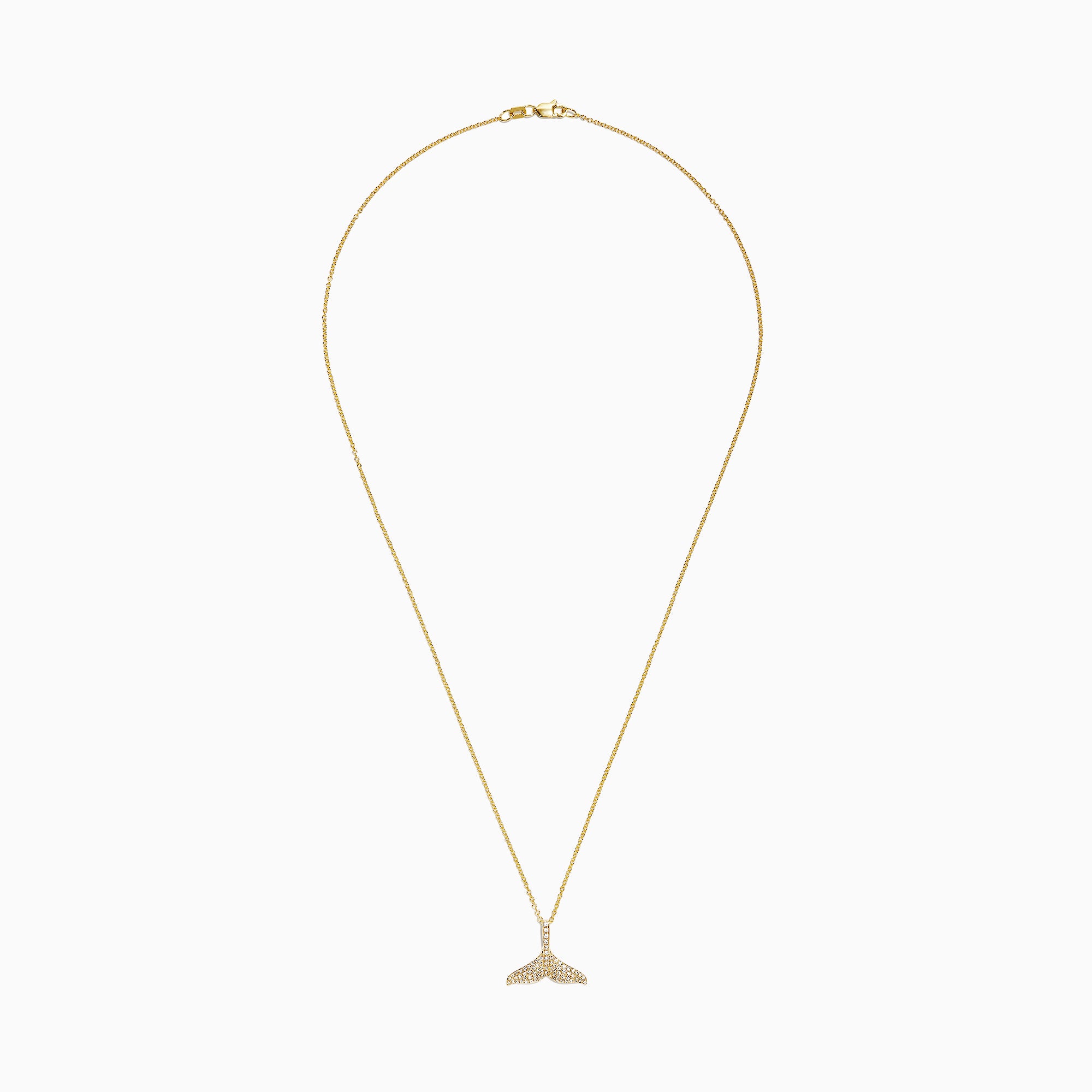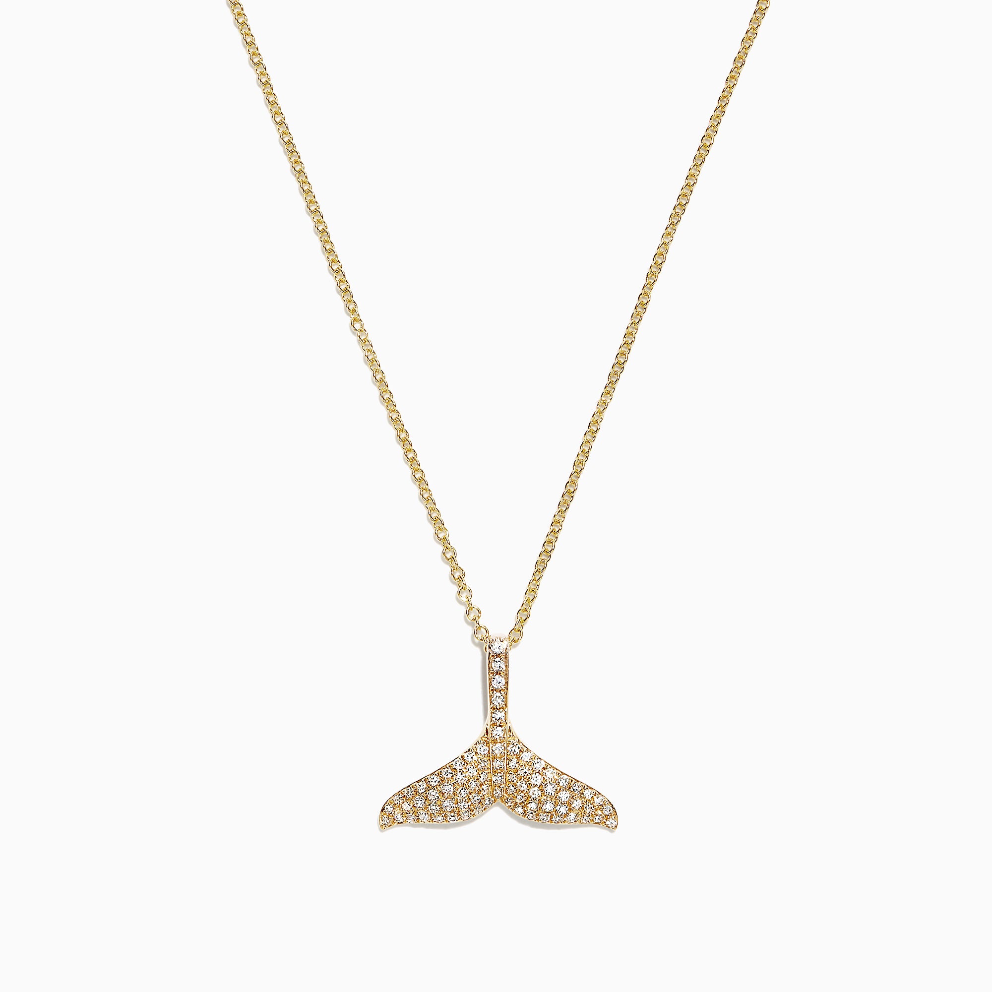Seaside 14K Yellow Gold Diamond Whale's Tail Pendant, 0.28 TCW