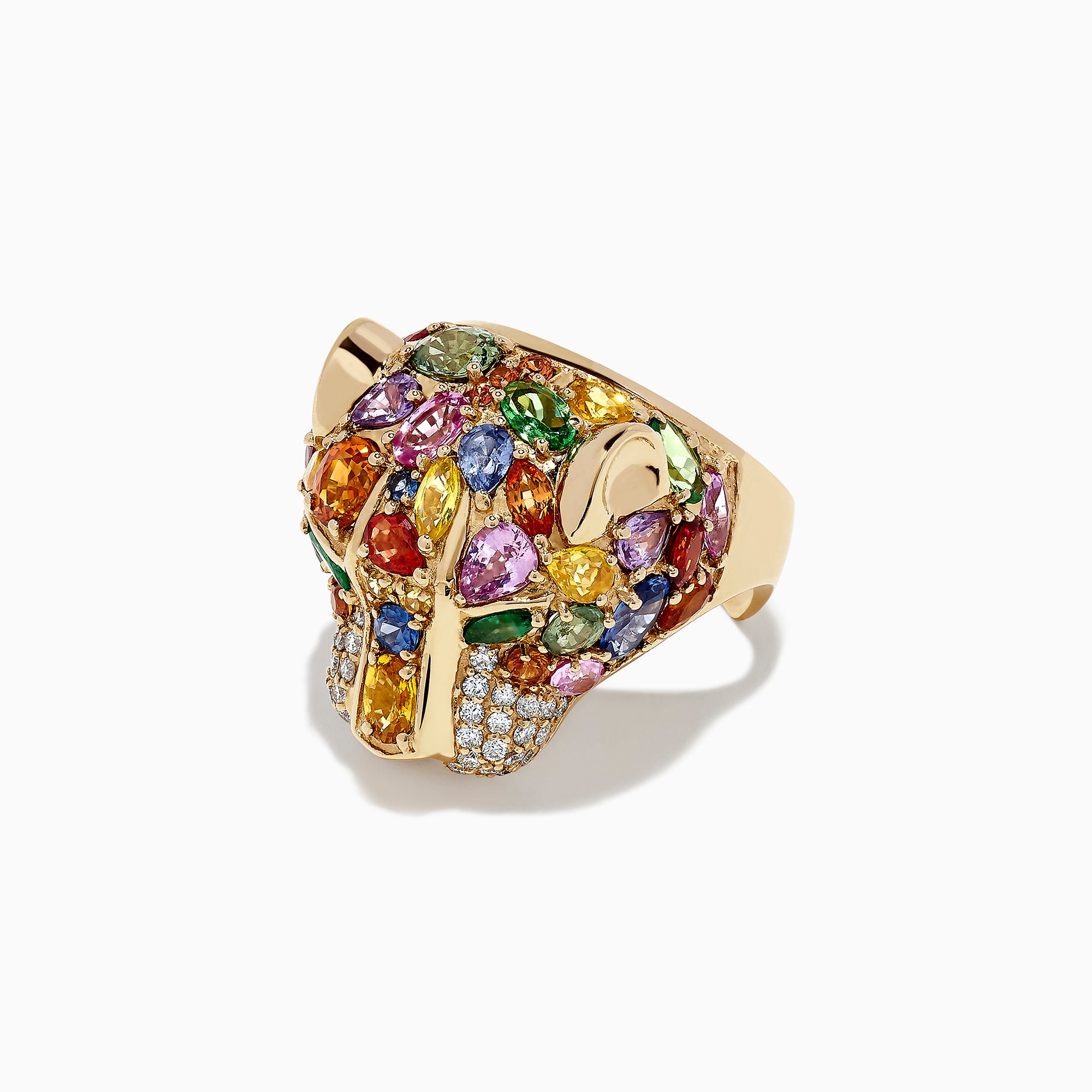 Effy Watercolors 14K Gold Multi Sapphire, Diamond & Emerald Panther Ring