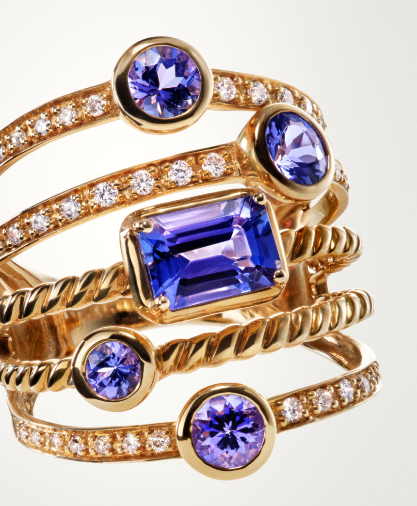 A saturated and shade-shifting gemstone that ranges from light blue and lilac to deep indigo and violet, tanzanite is associated with softness, empathy and compassion.