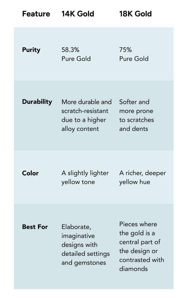 While browsing, you'll often see 14K gold jewelry and 18K gold jewelry. The main difference between these two is the percentage of pure gold they contain. This difference in composition has a direct impact on the jewelry's characteristics, making one more suitable for your lifestyle than the other.
