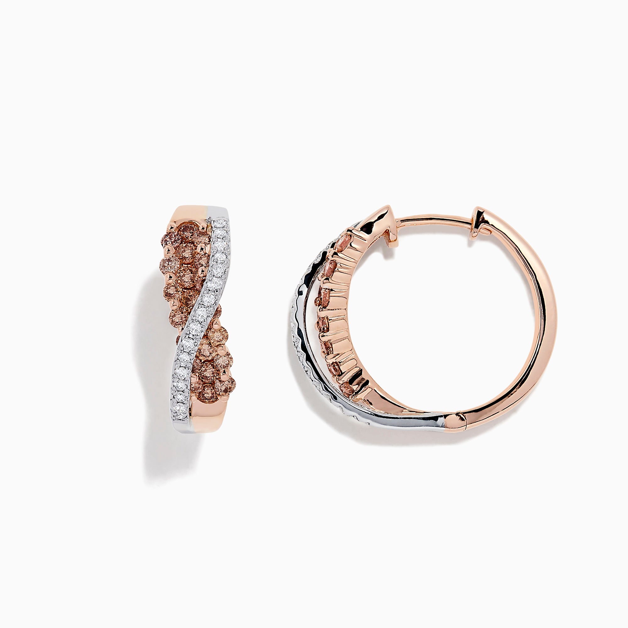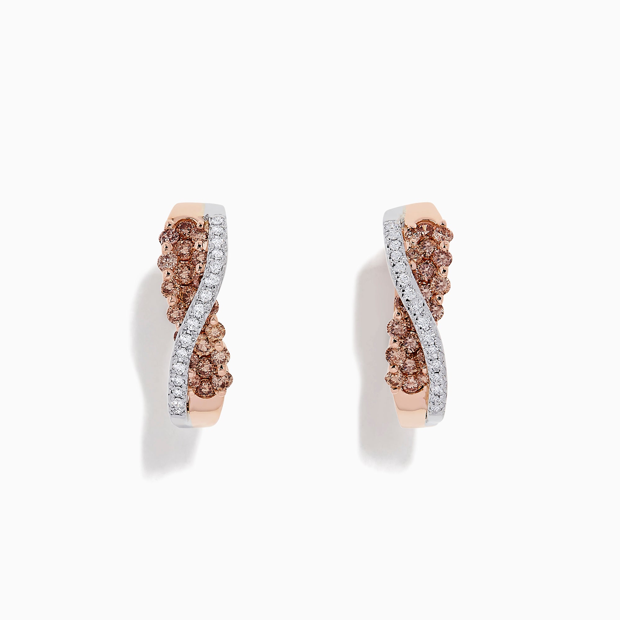 14K 2-Tone Gold Brown and White Diamond Crossover Hoop Earrings, 1.00 TCW