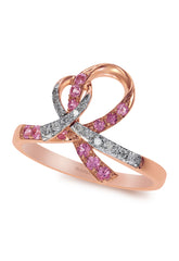 14K Rose Gold Pink Sapphire and Diamond Breast Cancer Awareness Ribbon Earrings, 0.54 TCW