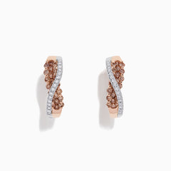 14K Two Tone Gold Brown and White Diamond Crossover Pendant, 1.00 TCW