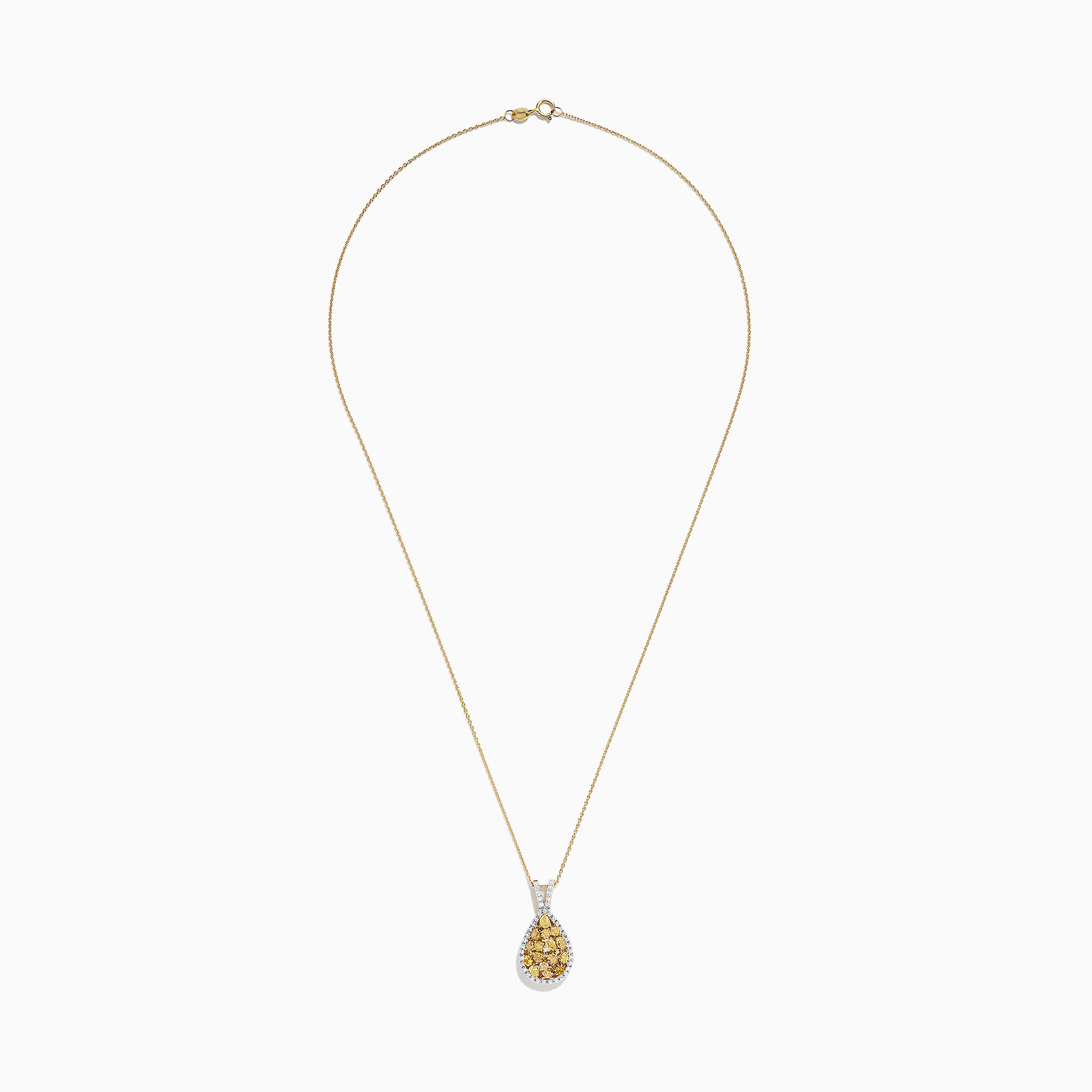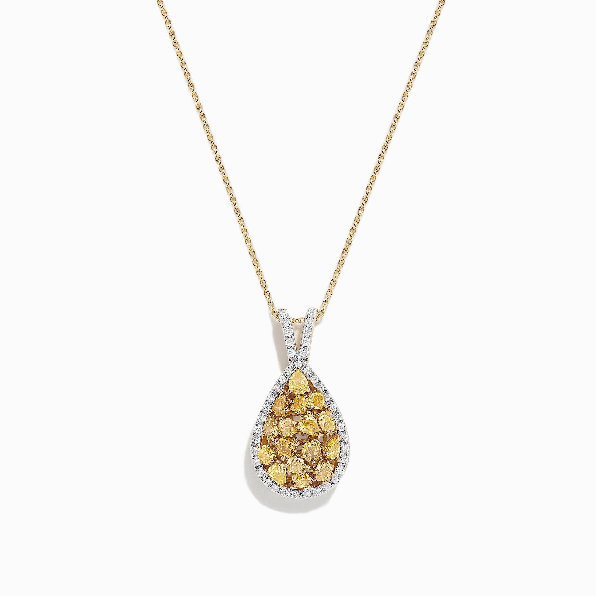 14K Two Tone Gold Yellow Diamond Pendant, 1.75 TCW