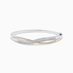 14K White and Yellow Gold 3/4" Diamond Crossover Hoop Earrings, 1.00 TCW