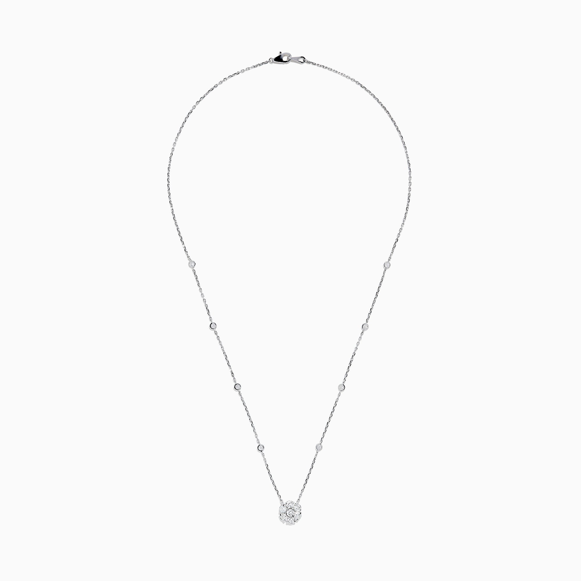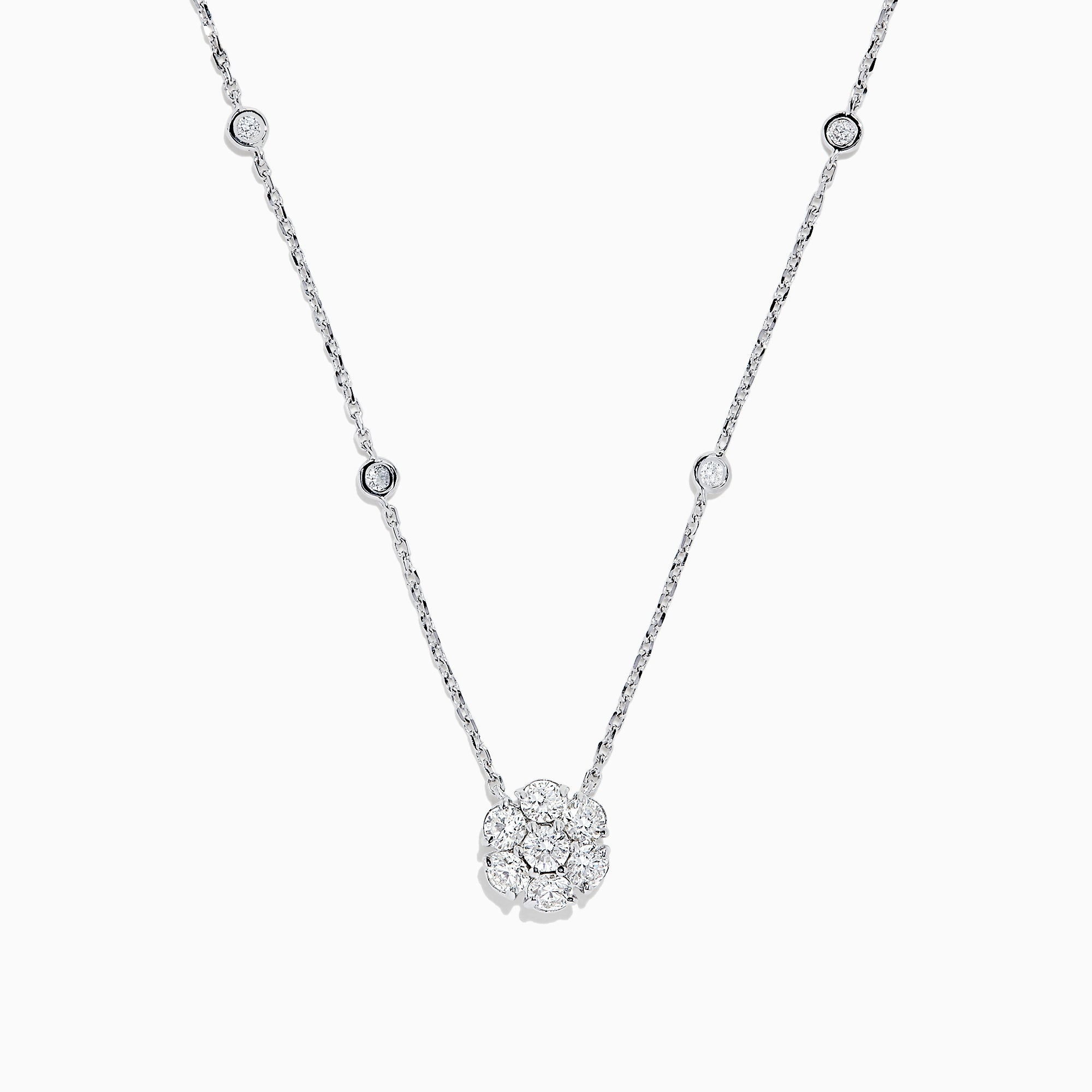 14K White Gold 18" Diamond Station and Flower Cluster Necklace, 1.51 TCW