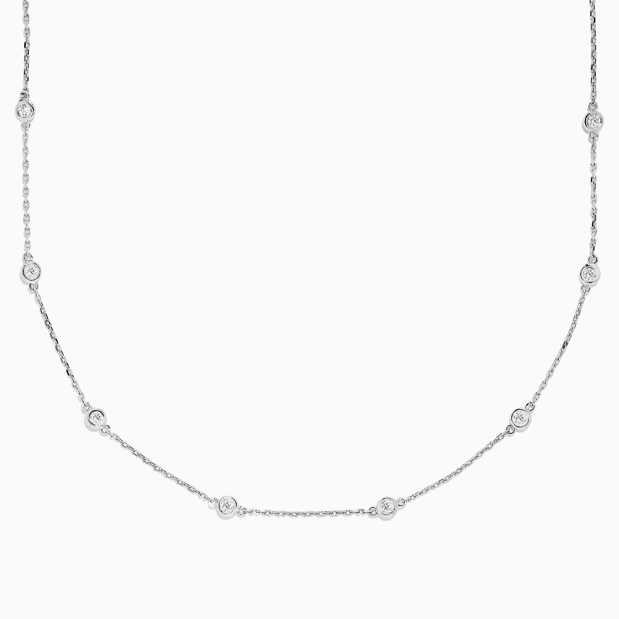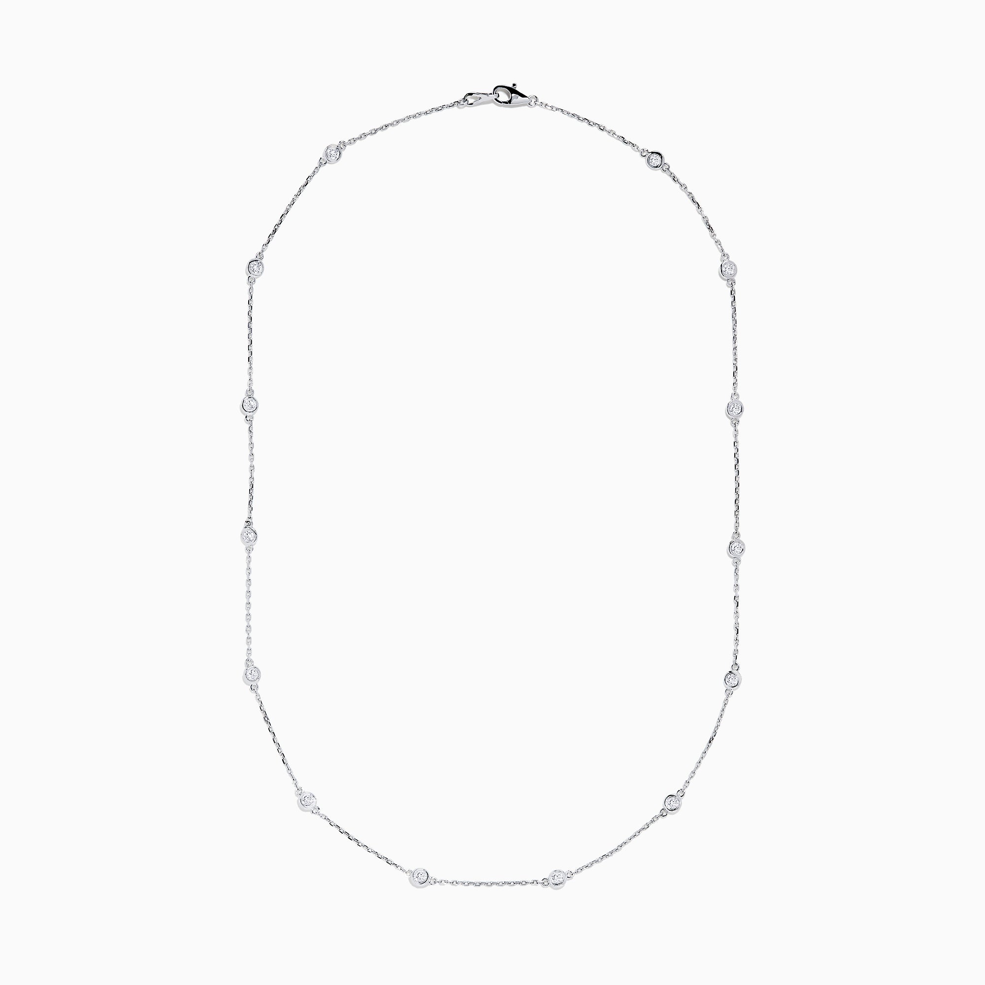 14K White Gold 18" Diamond Station Necklace, 1.00 TCW