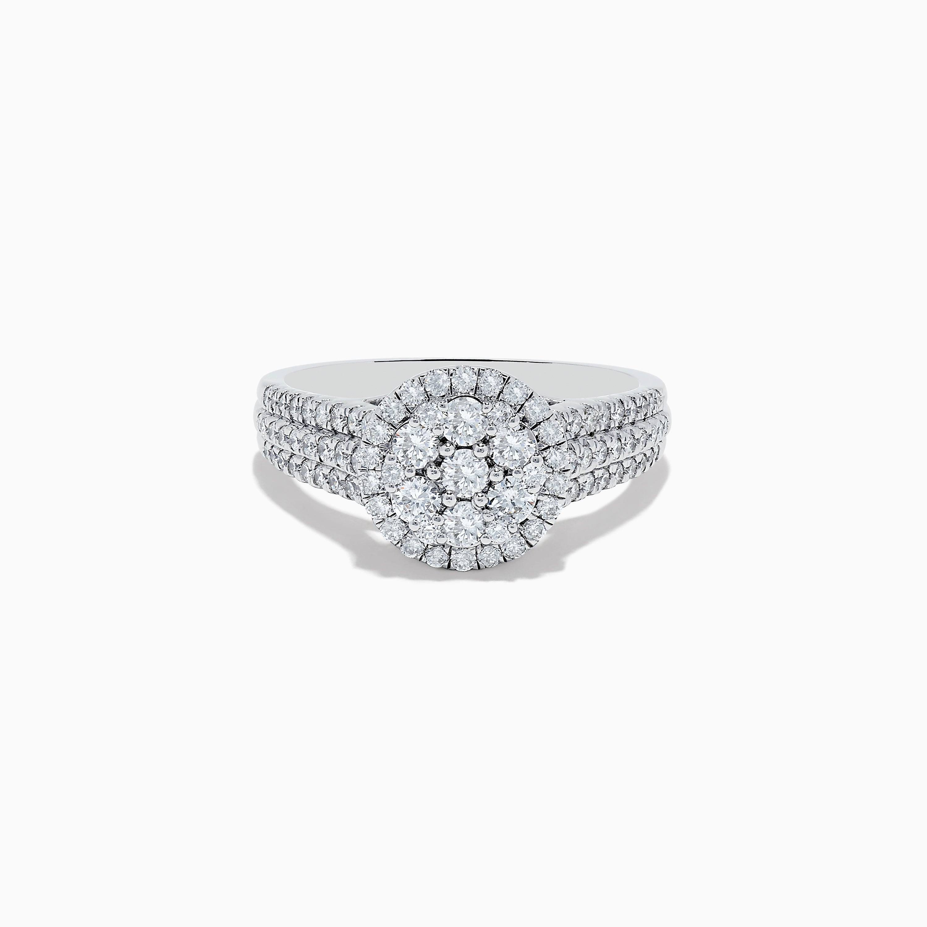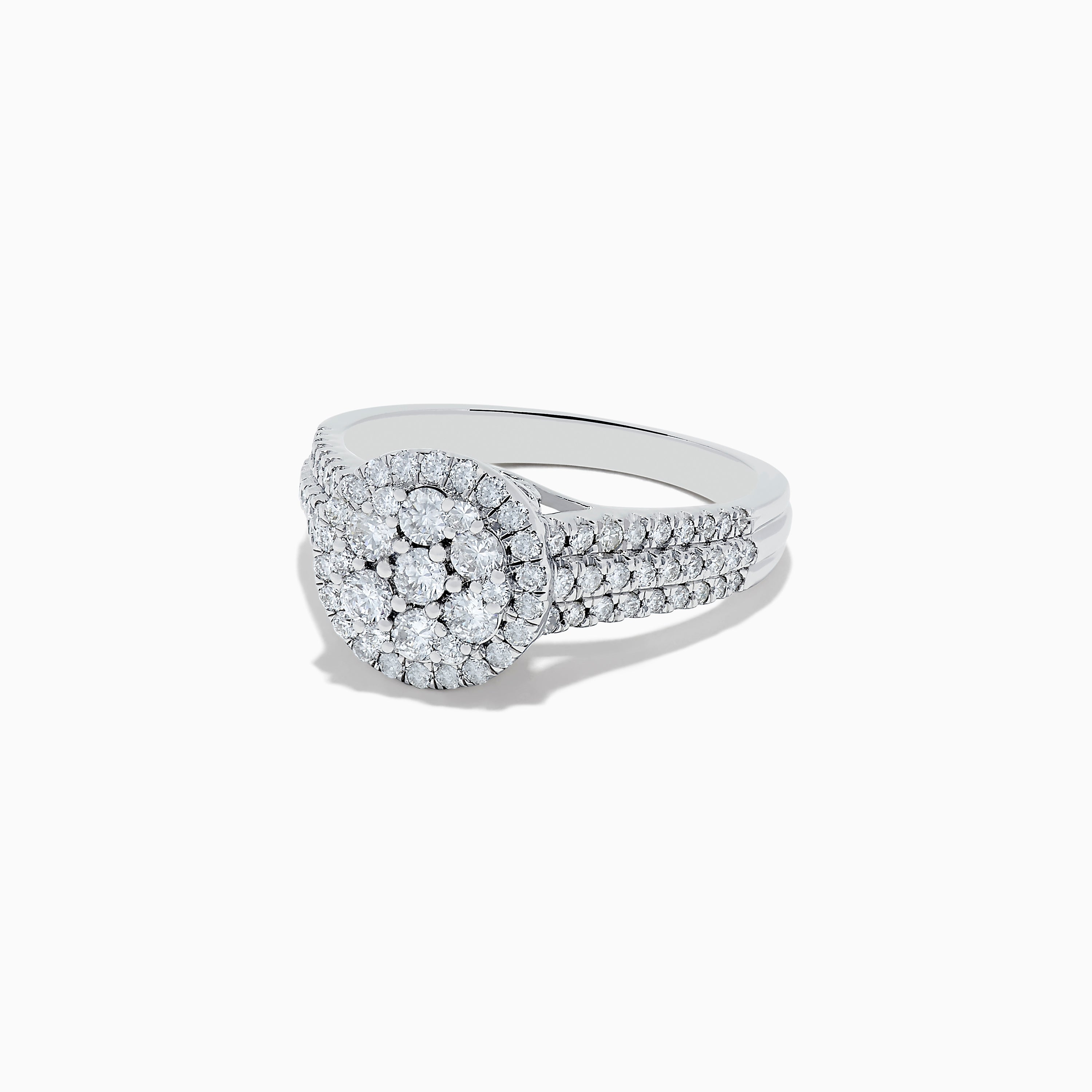 14K White Gold Diamond Cluster Ring, 0.95 TCW