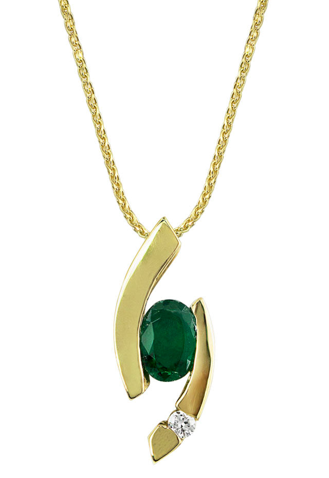 14K Yellow Gold Emerald and Diamond Pendant, .77 TCW