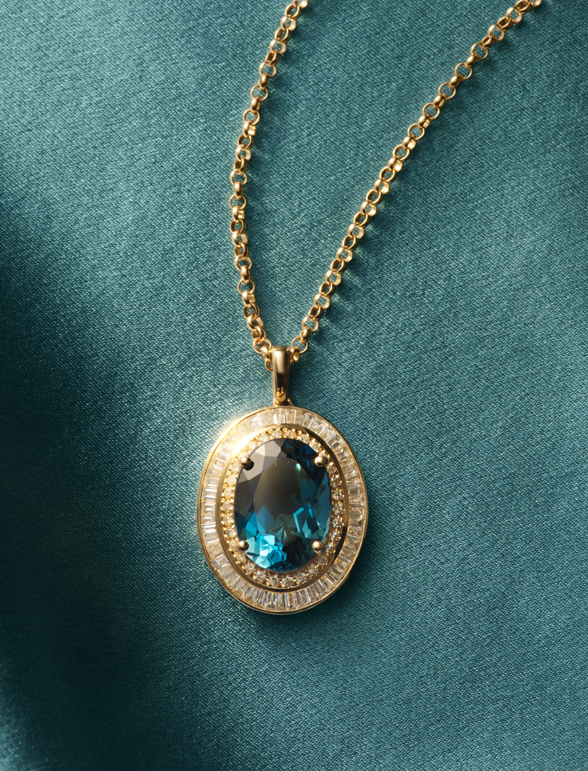 18K Two Tone Gold Paraiba and Diamond Double Halo Pendant
