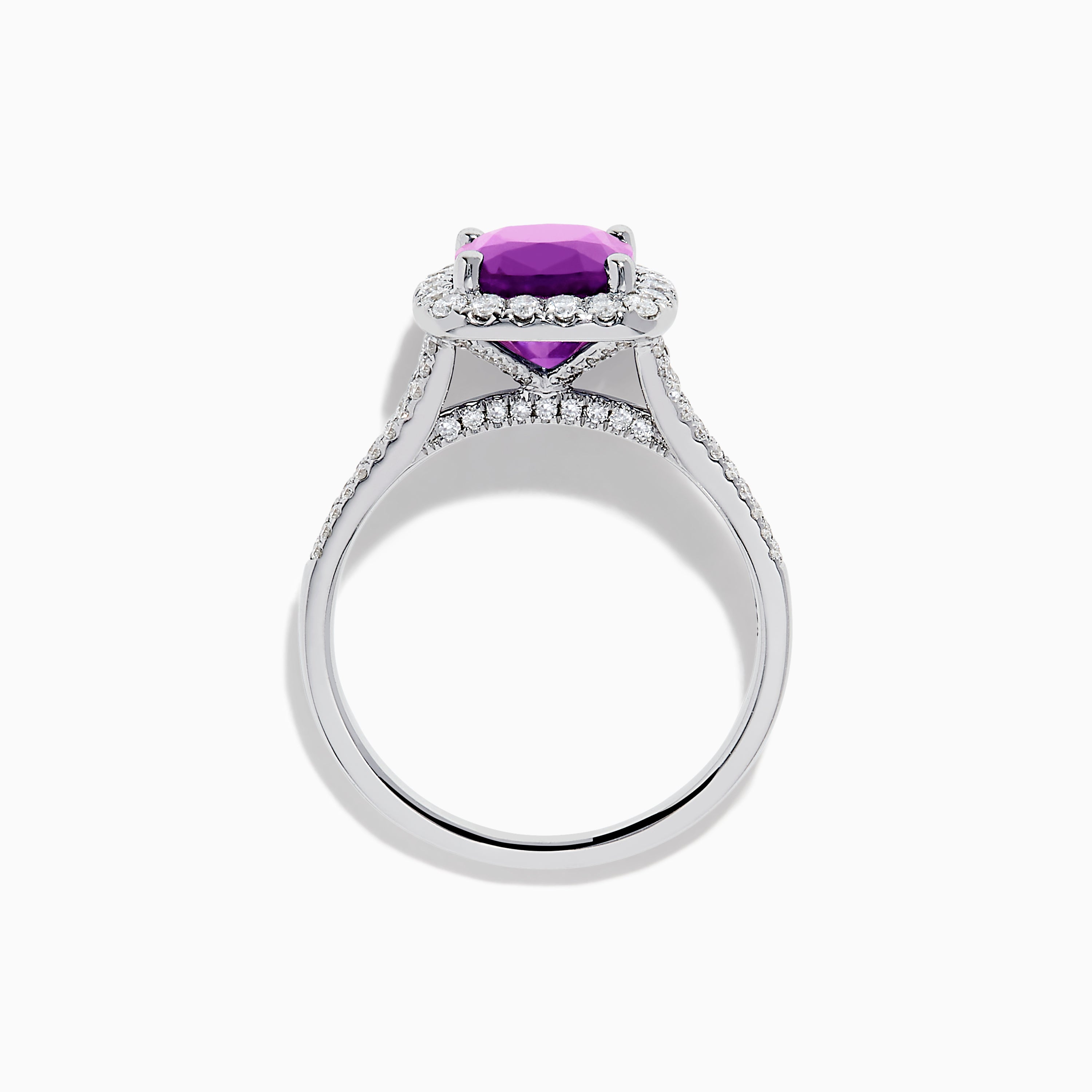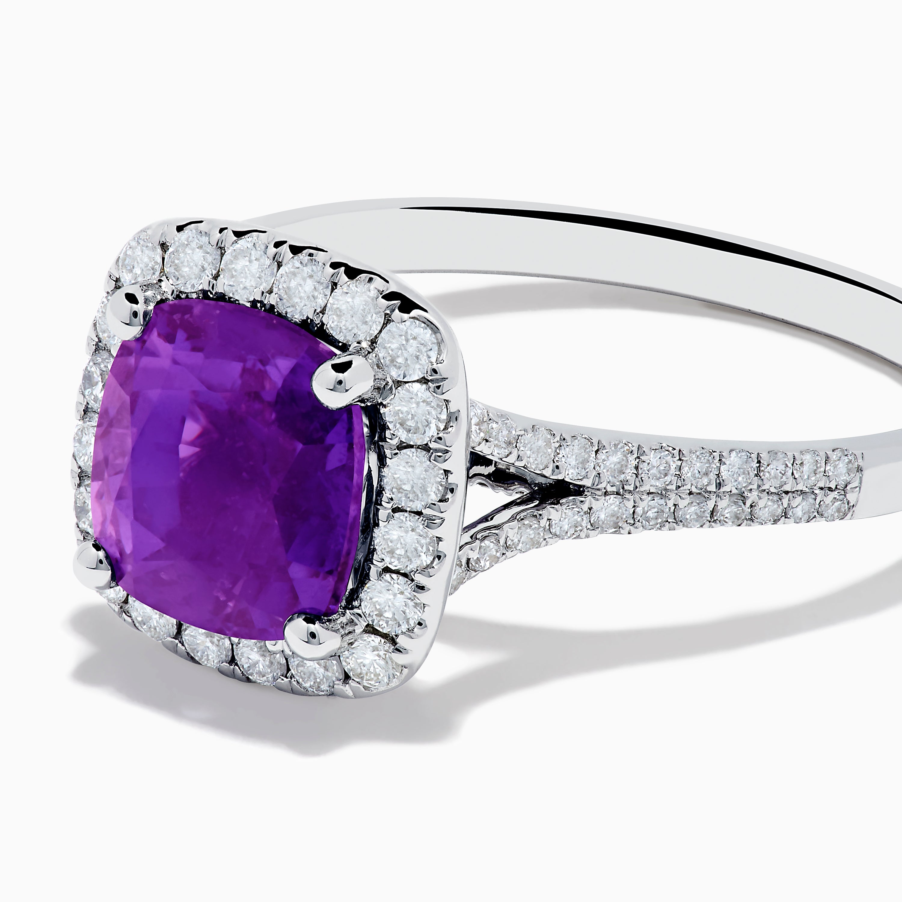 18K White Gold Purple Sapphire and Diamond Halo Ring