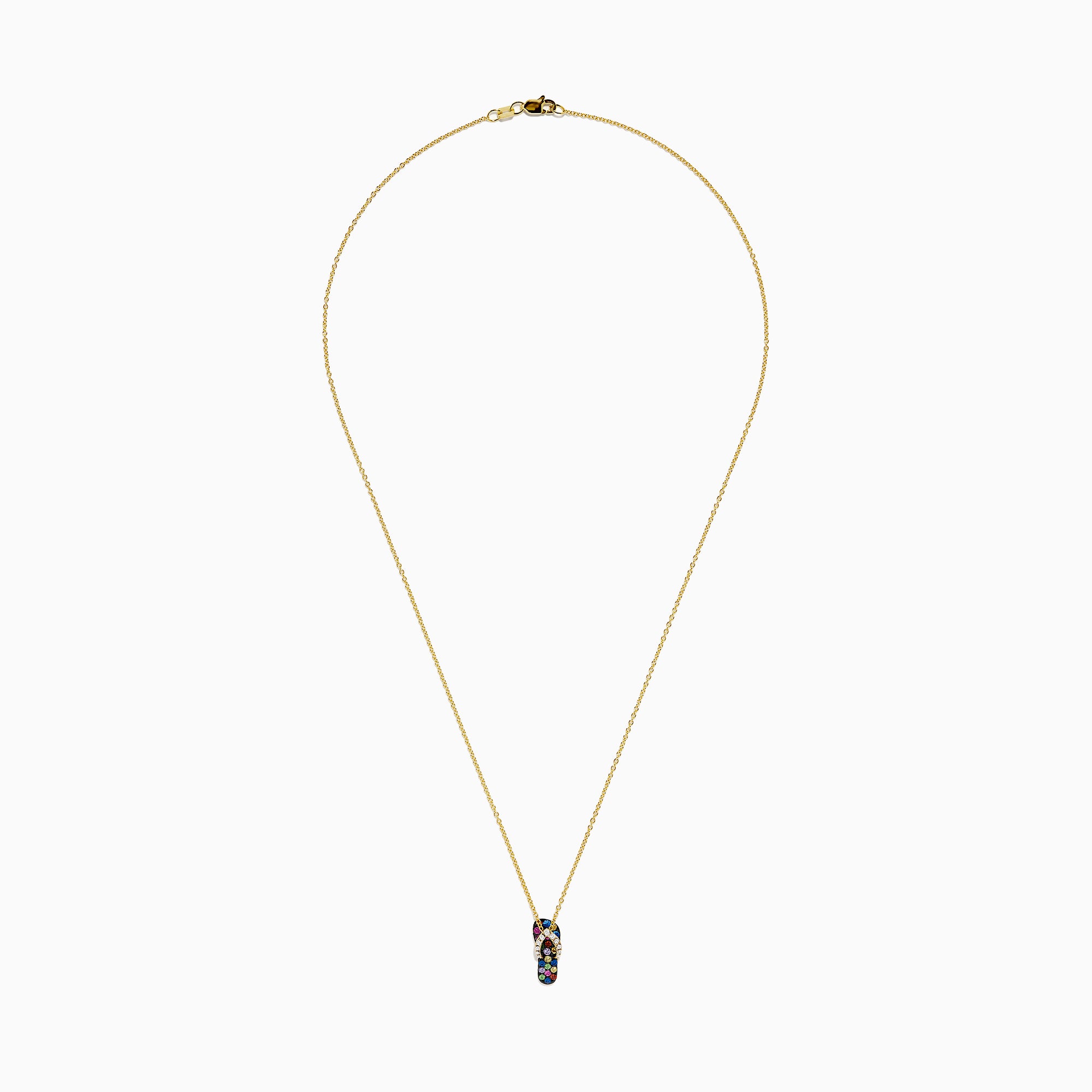 Effy 14K Gold Multi Sapphire and Diamond Flip Flop Pendant, 0.53 TCW