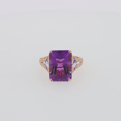 14K Rose Gold Amethyst, Tanzanite and Diamond Cocktail Ring, 7.60 TCW