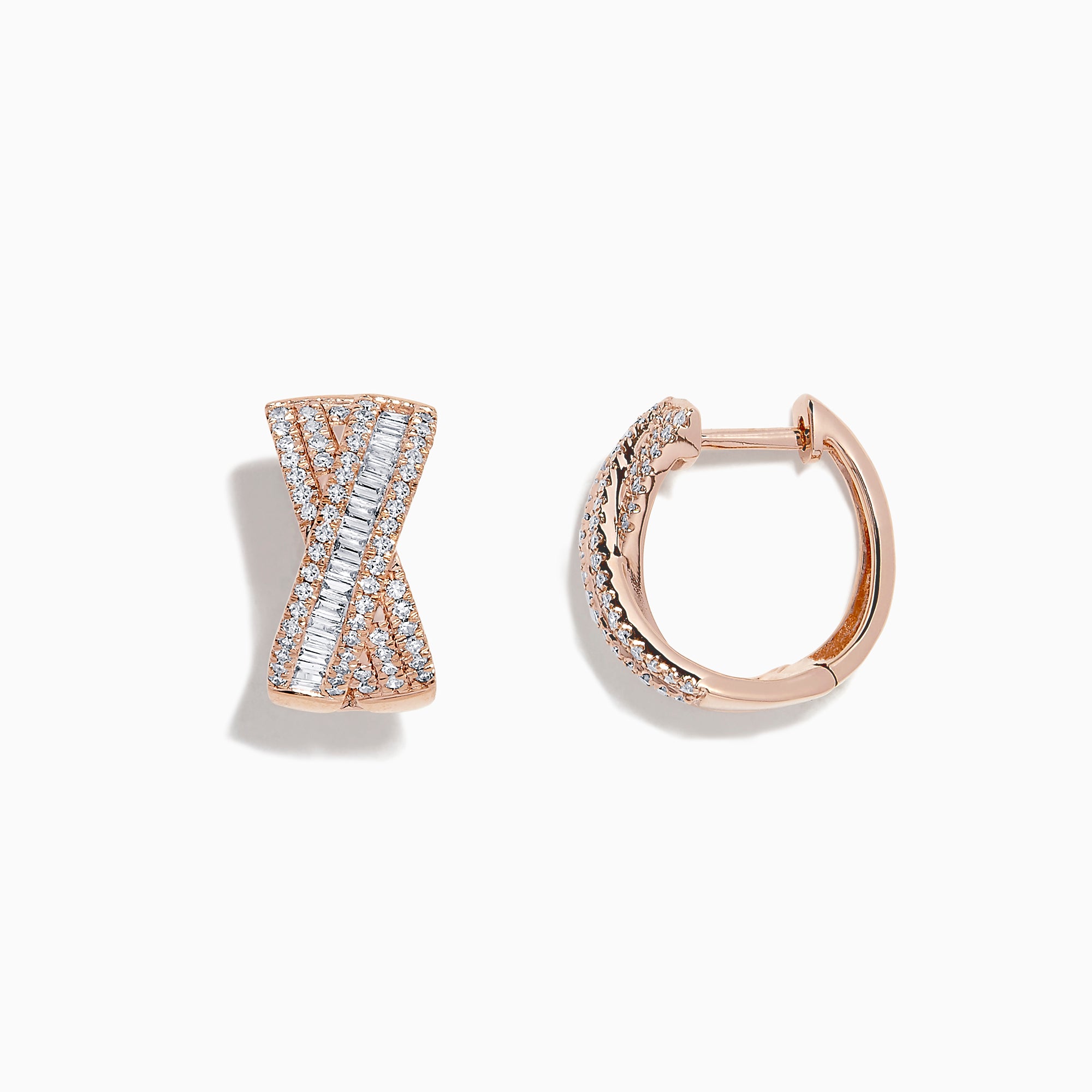 Effy 14K Rose Gold Diamond Cross Over Earrings, 0.60 TCW