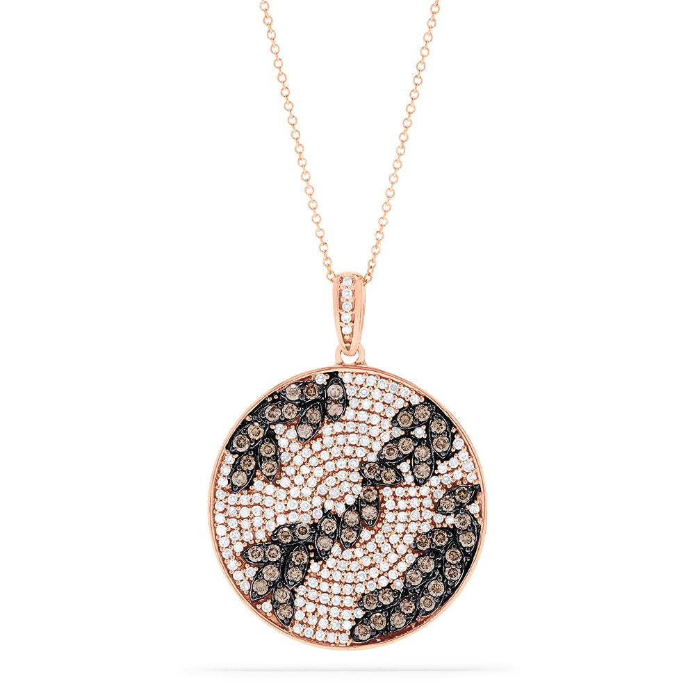 14K Rose Gold Espresso and White Diamond Pendant, 1.65 TCW