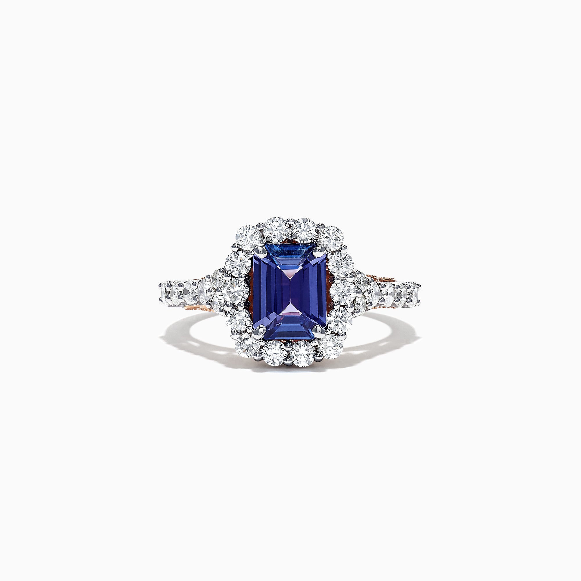 Effy 14K Two Tone Gold Emerald Cut Tanzanite and Diamond Ring, 2.32 TCW