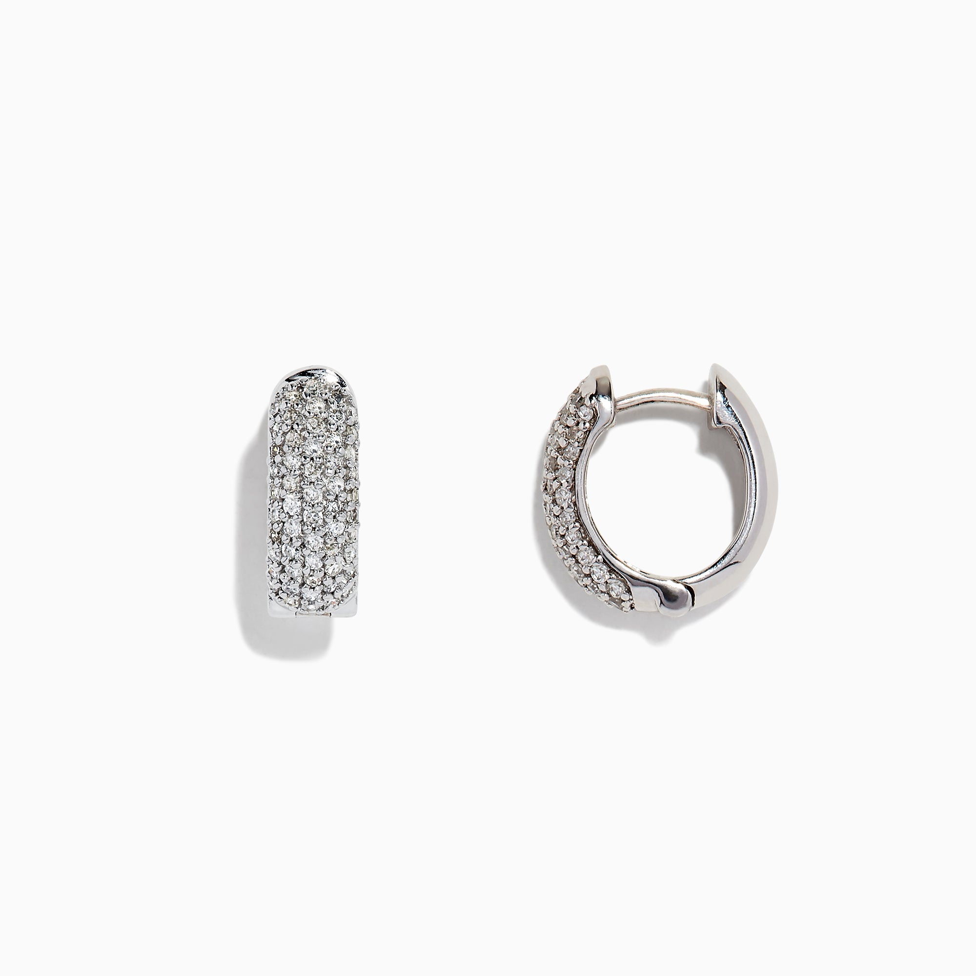 Effy 14K White Gold Diamond Huggie Hoop Earrings,0.53 TCW