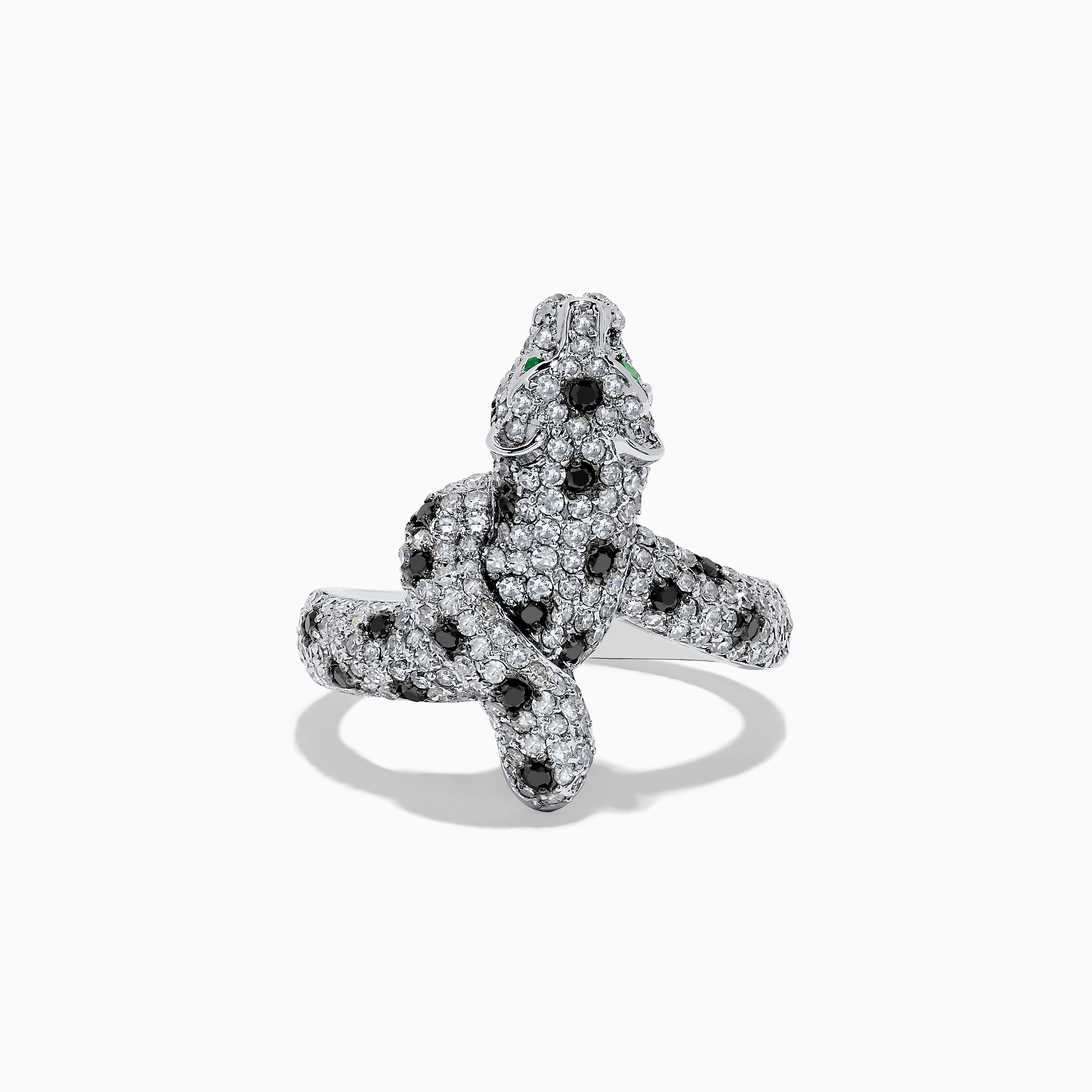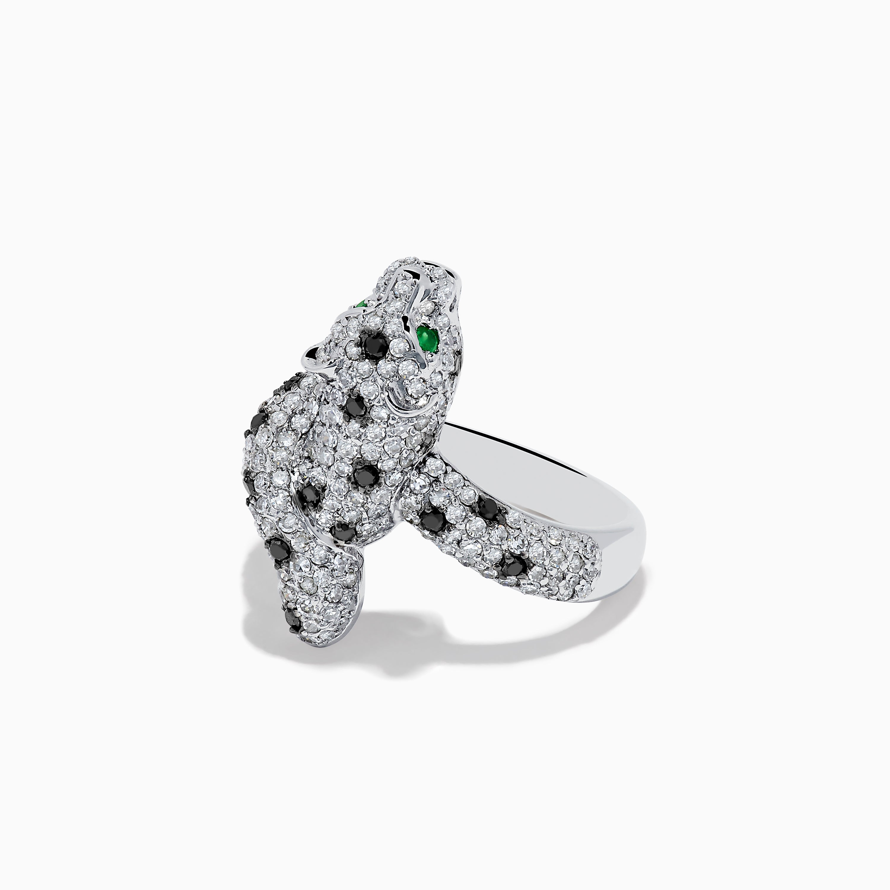 Effy 14K White Gold Emerald, White and Black Diamond Panther Ring