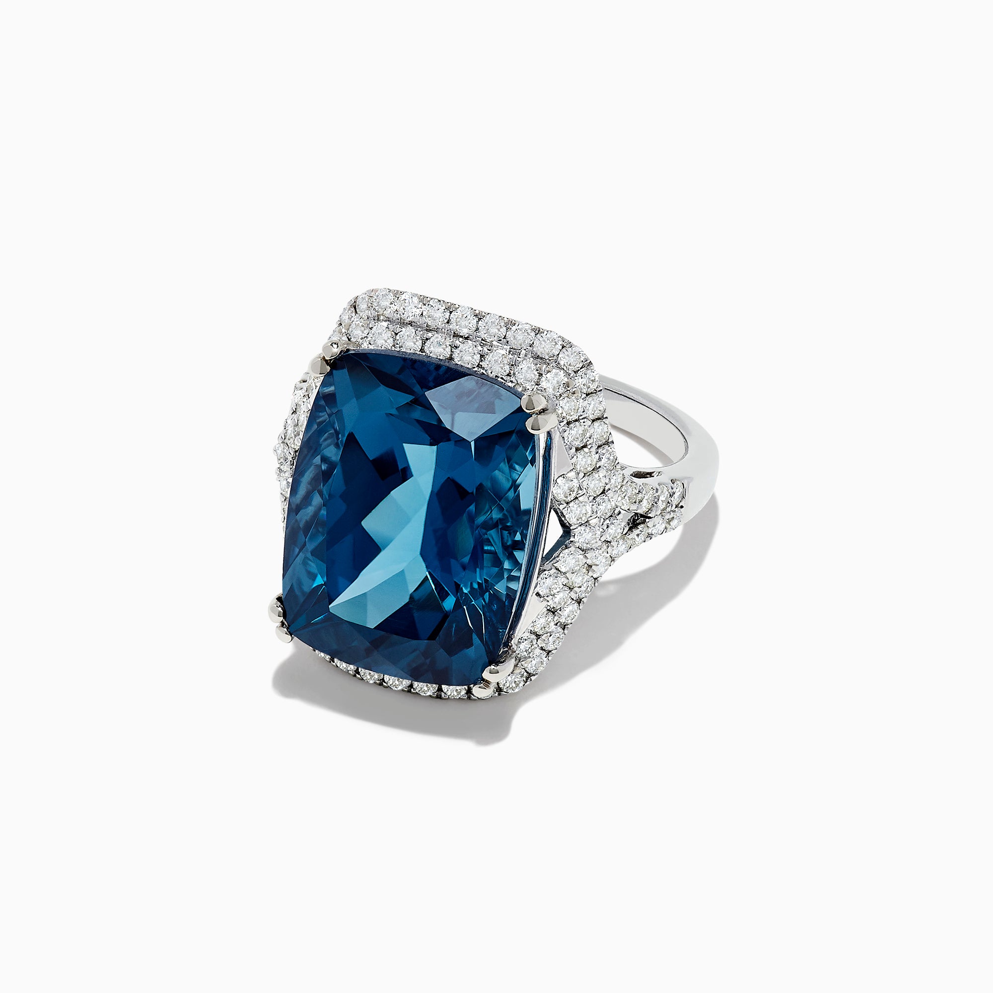 Effy 14K White Gold London Blue Topaz and Diamond Cocktail Ring, 16.85 TCW