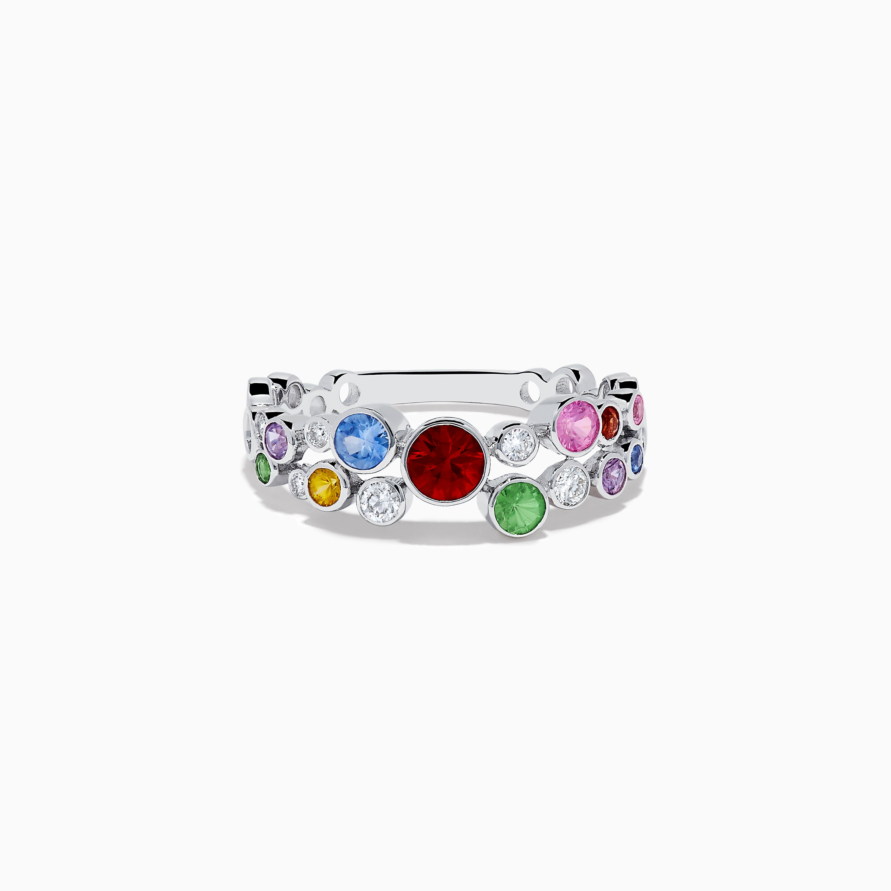 Watercolors 14K White Gold Multi Sapphire and Diamond Ring