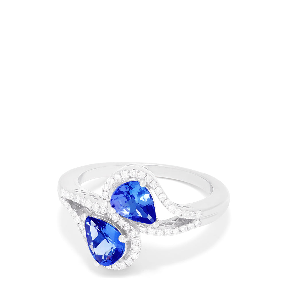 14K White Gold Pear Shaped Tanzanite and Diamond Bypass Ring, 0.74 TCW