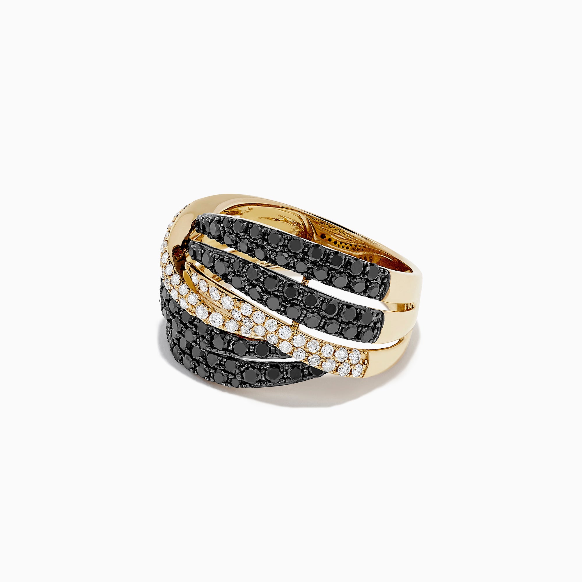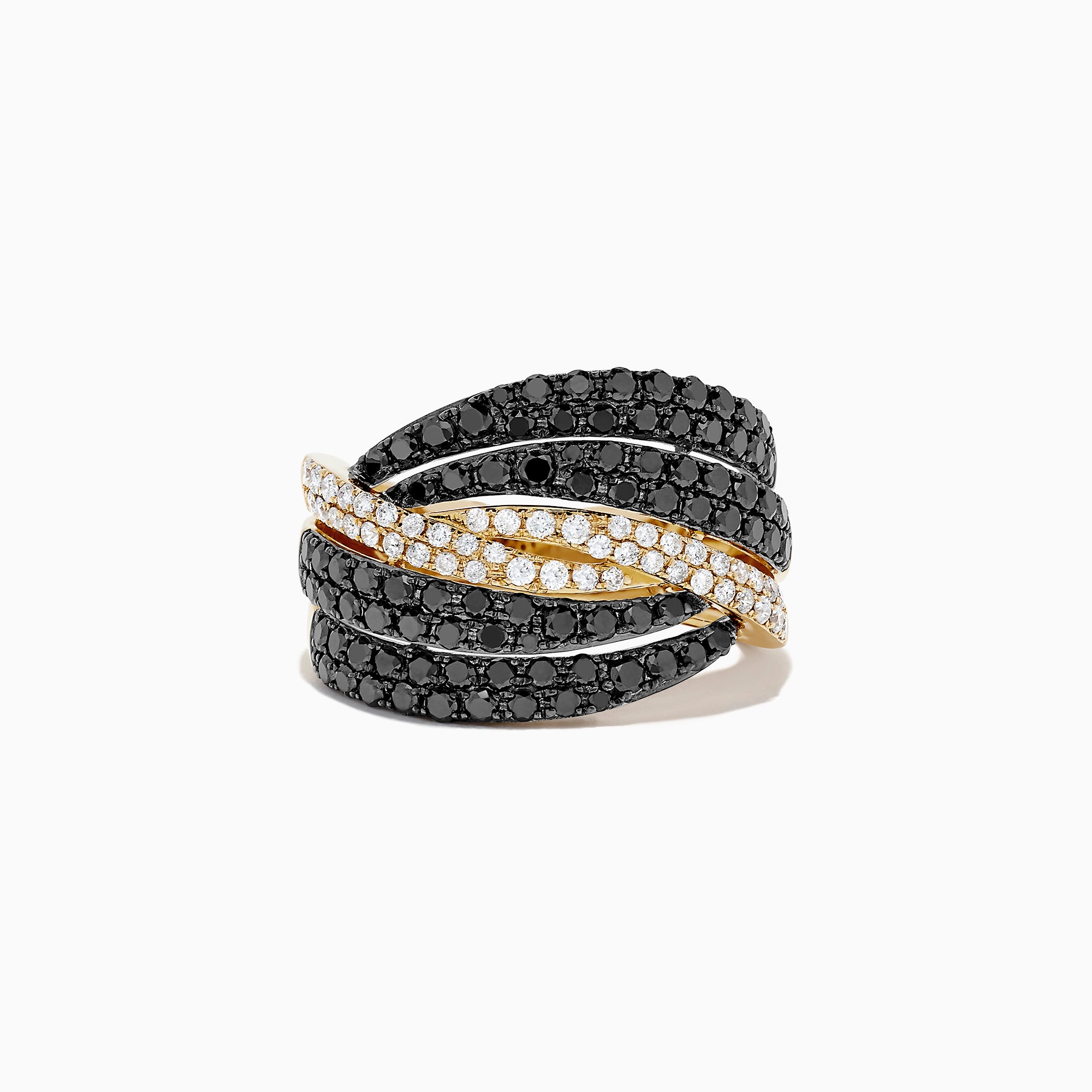 Effy 14K Yellow Gold Black and White Diamond Ring, 1.55 TCW