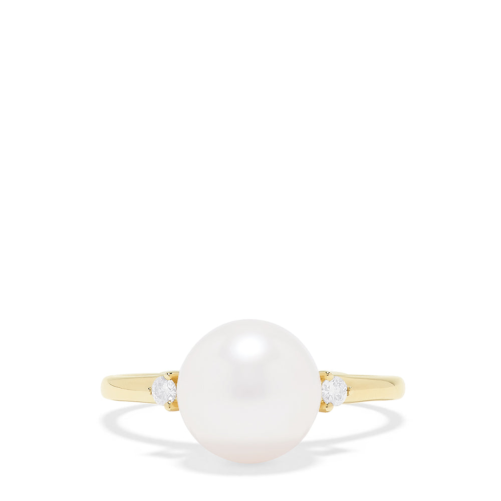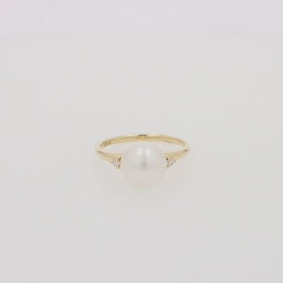 14K Yellow Gold Cultured Pearl and Diamond Accented Ring, 0.05 TCW