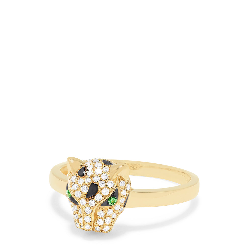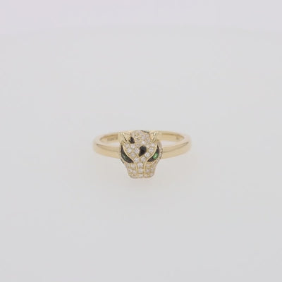 14K Yellow Gold Diamond and Tsavorite Panther Ring, 0.25 TCW