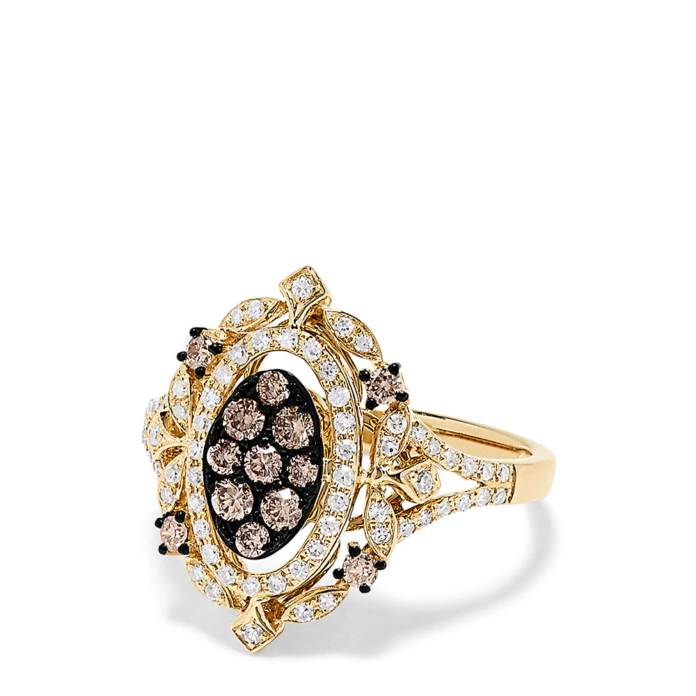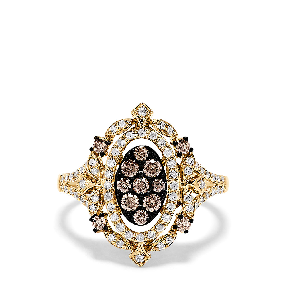 14K Yellow Gold Espresso and White Diamond Ring, 0.64 TCW