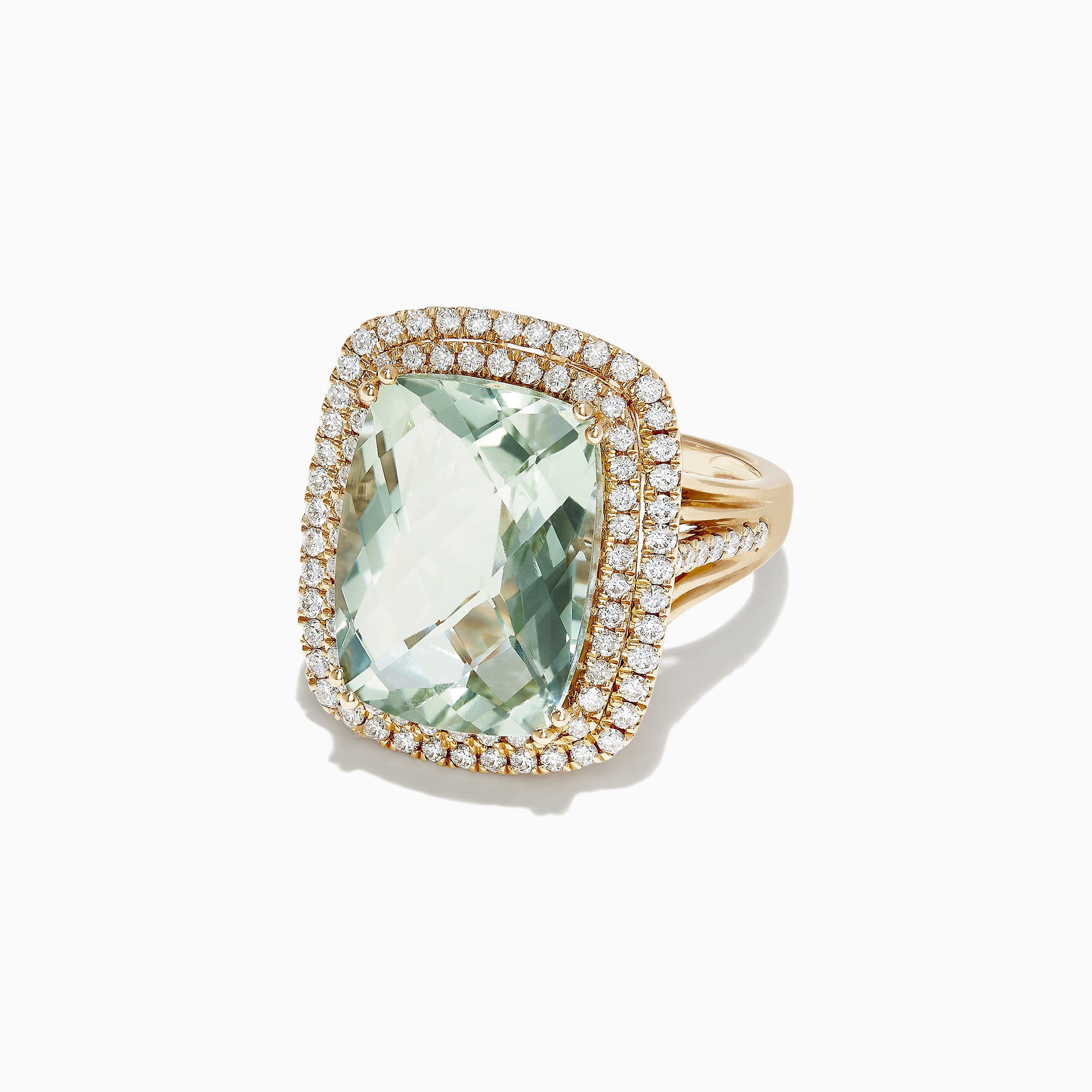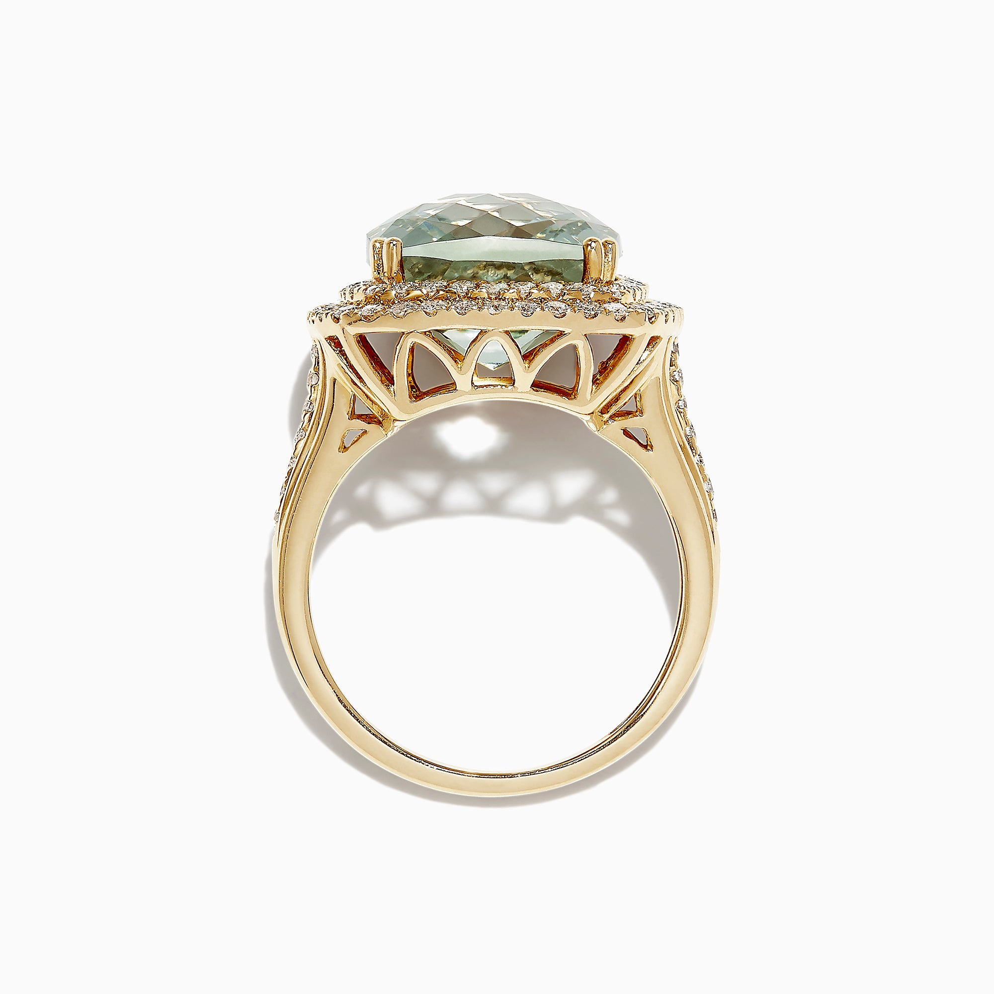 Effy 14K Yellow Gold Green Amethyst and Diamond Cocktail Ring, 11.22 TCW