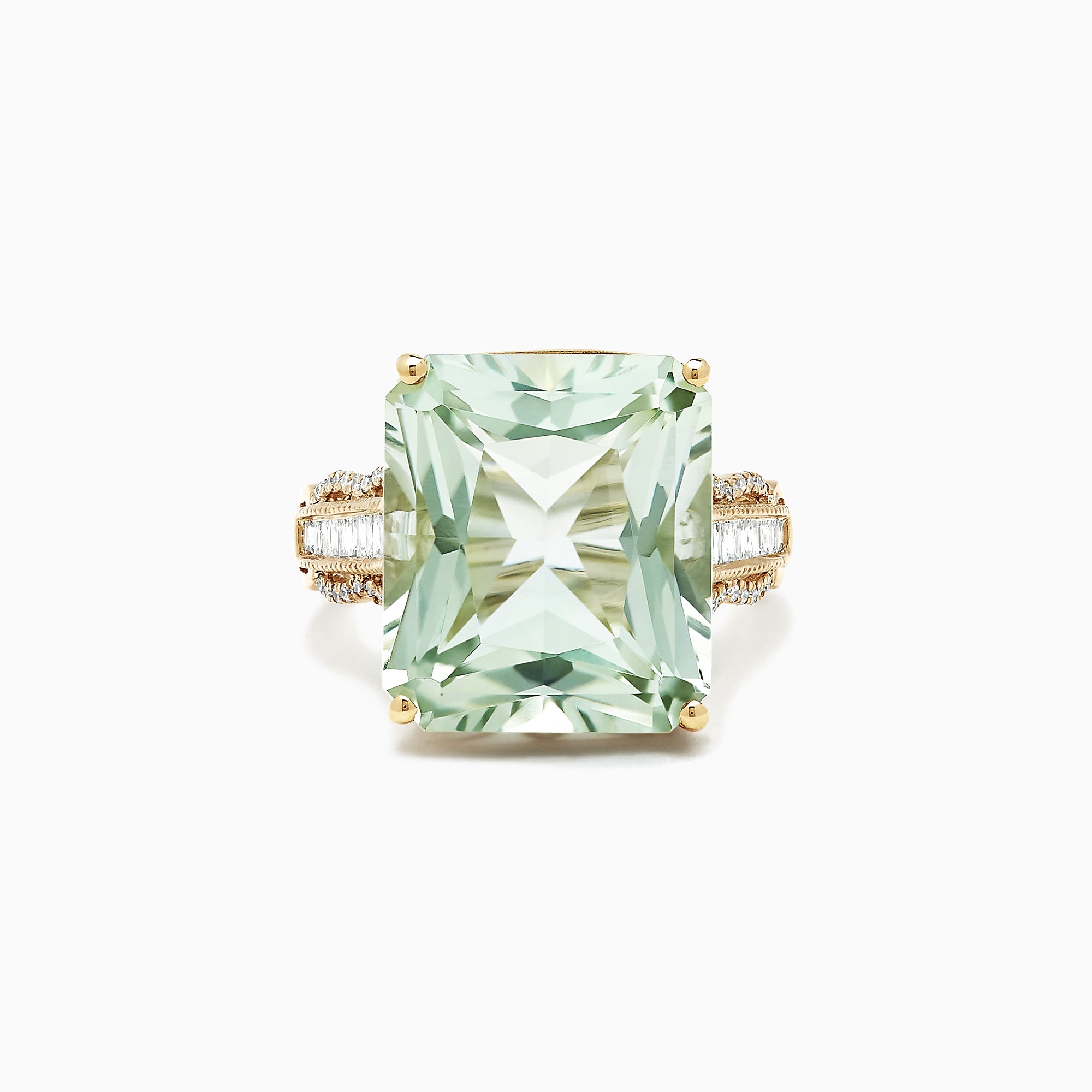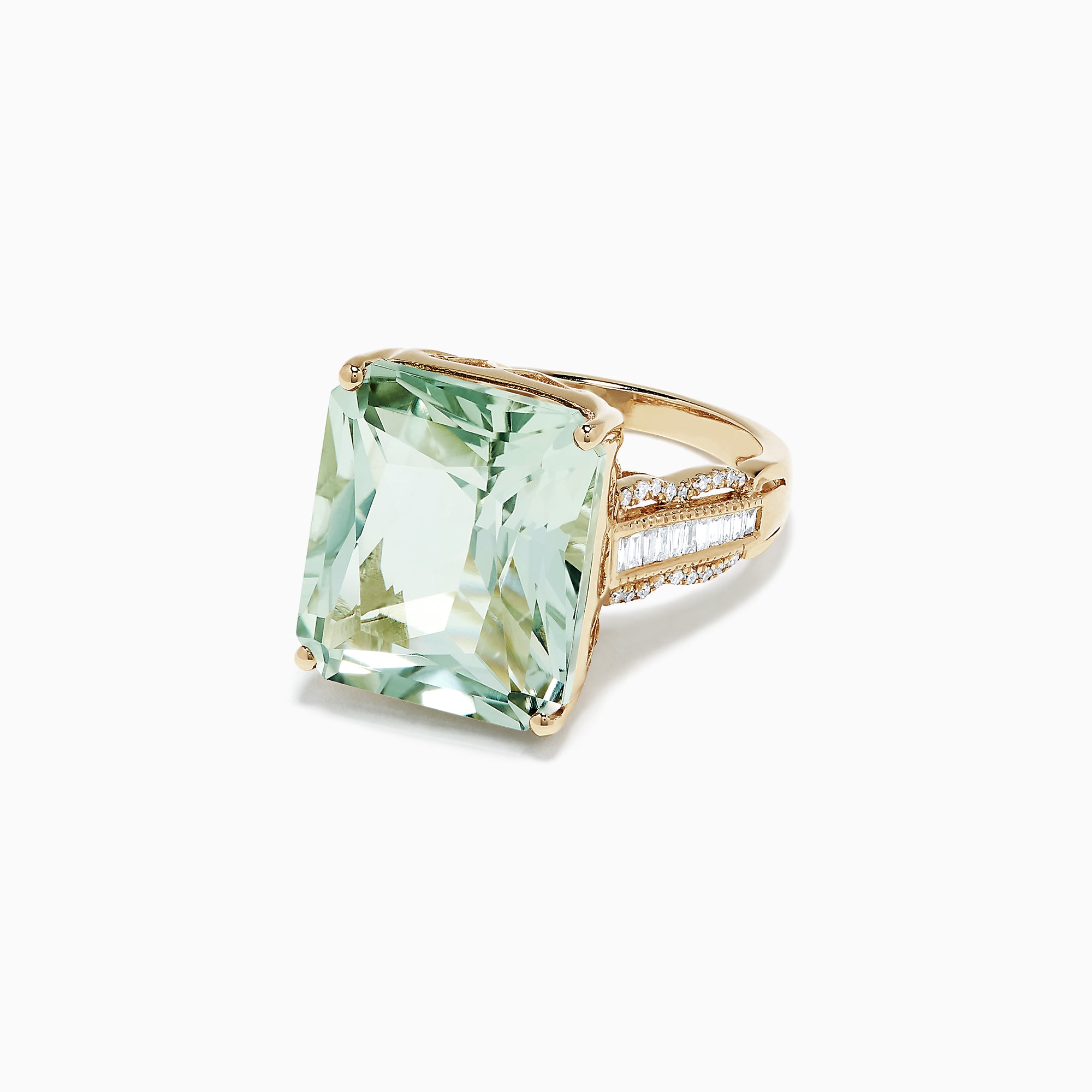 Effy 14K Yellow Gold Green Amethyst and Diamond Cocktail Ring, 16.35 TCW