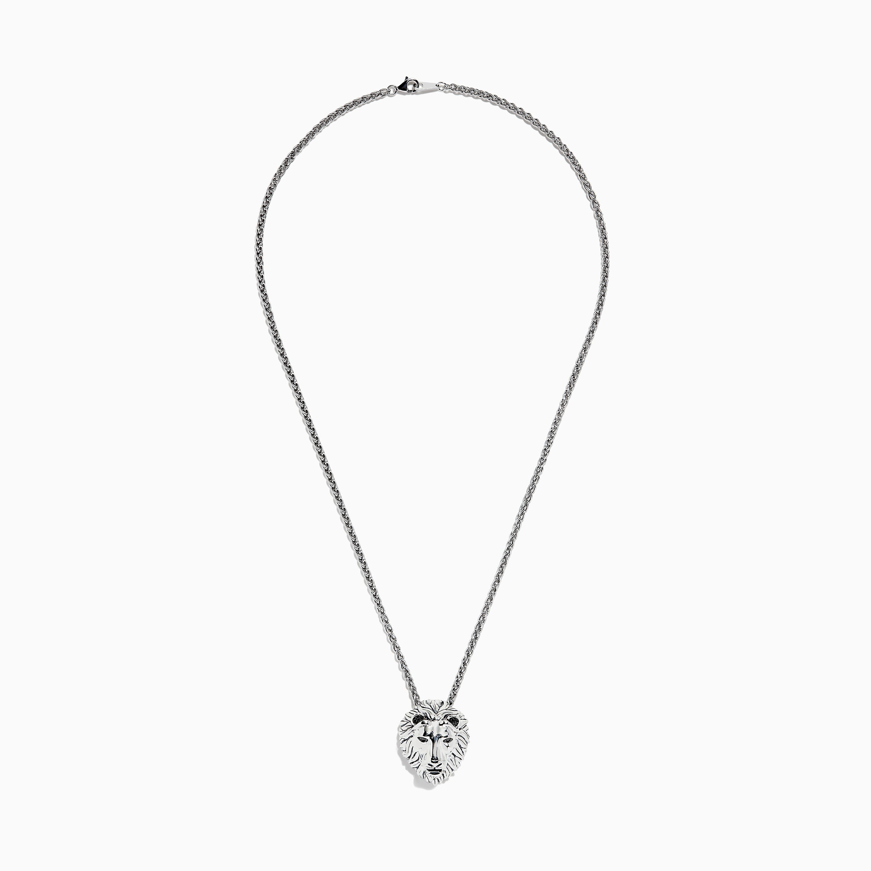 Effy 925 Sterling Silver Black Diamond Lion Pendant, 0.07 TCW