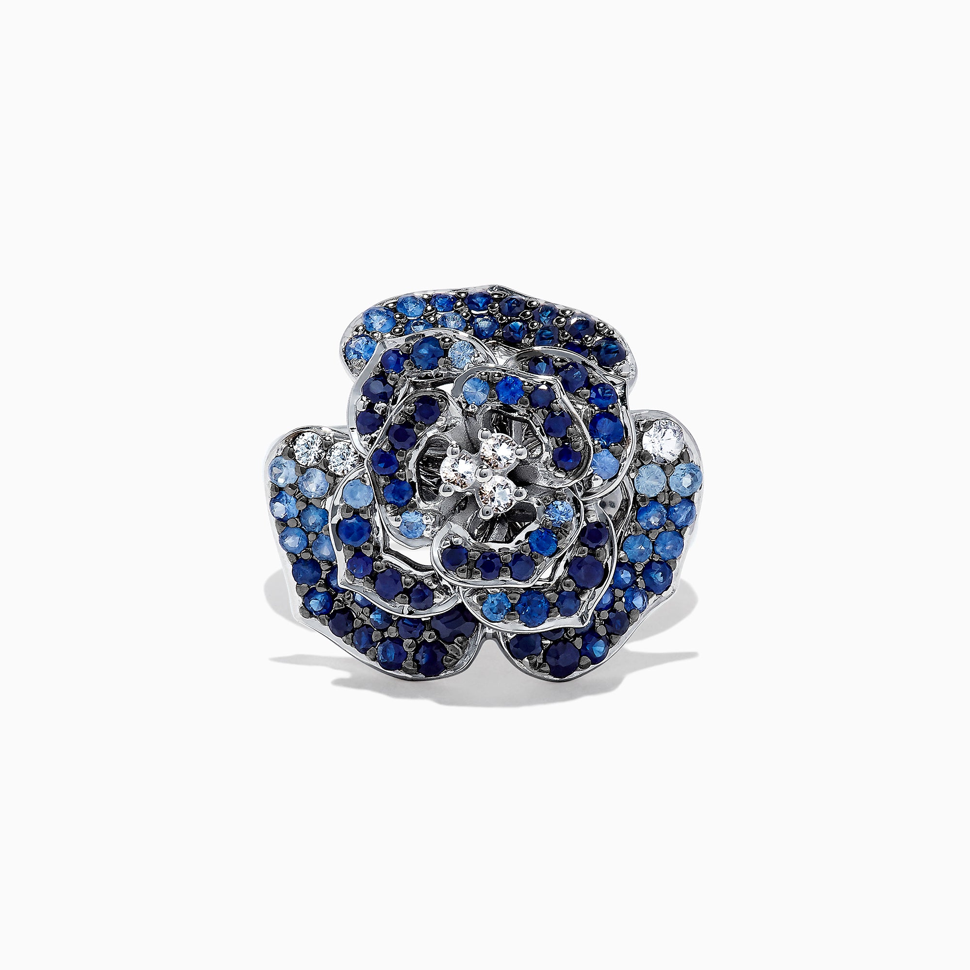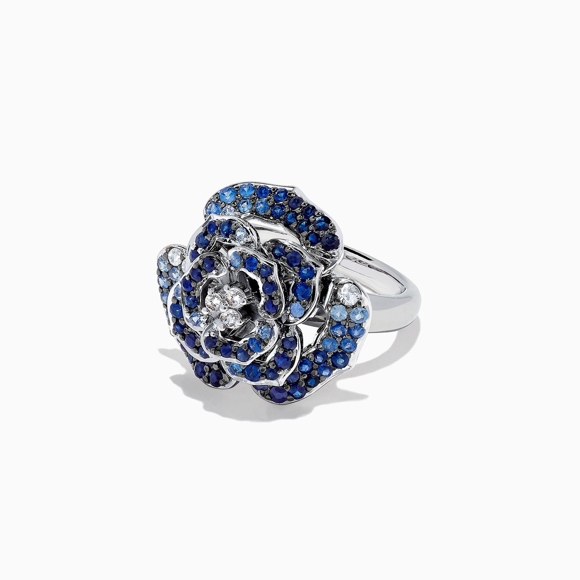 Effy 925 Sterling Silver Blue & White Sapphire Splash Flower Ring, 1.70 TCW