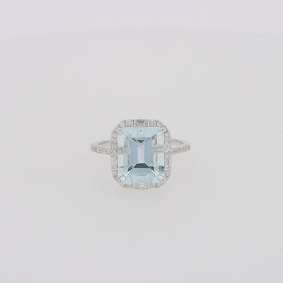 Aquarius 14K White Gold Aquamarine and Diamond Ring