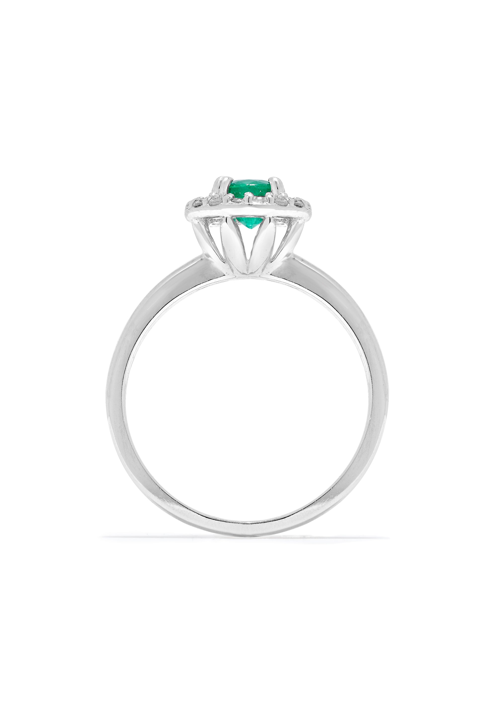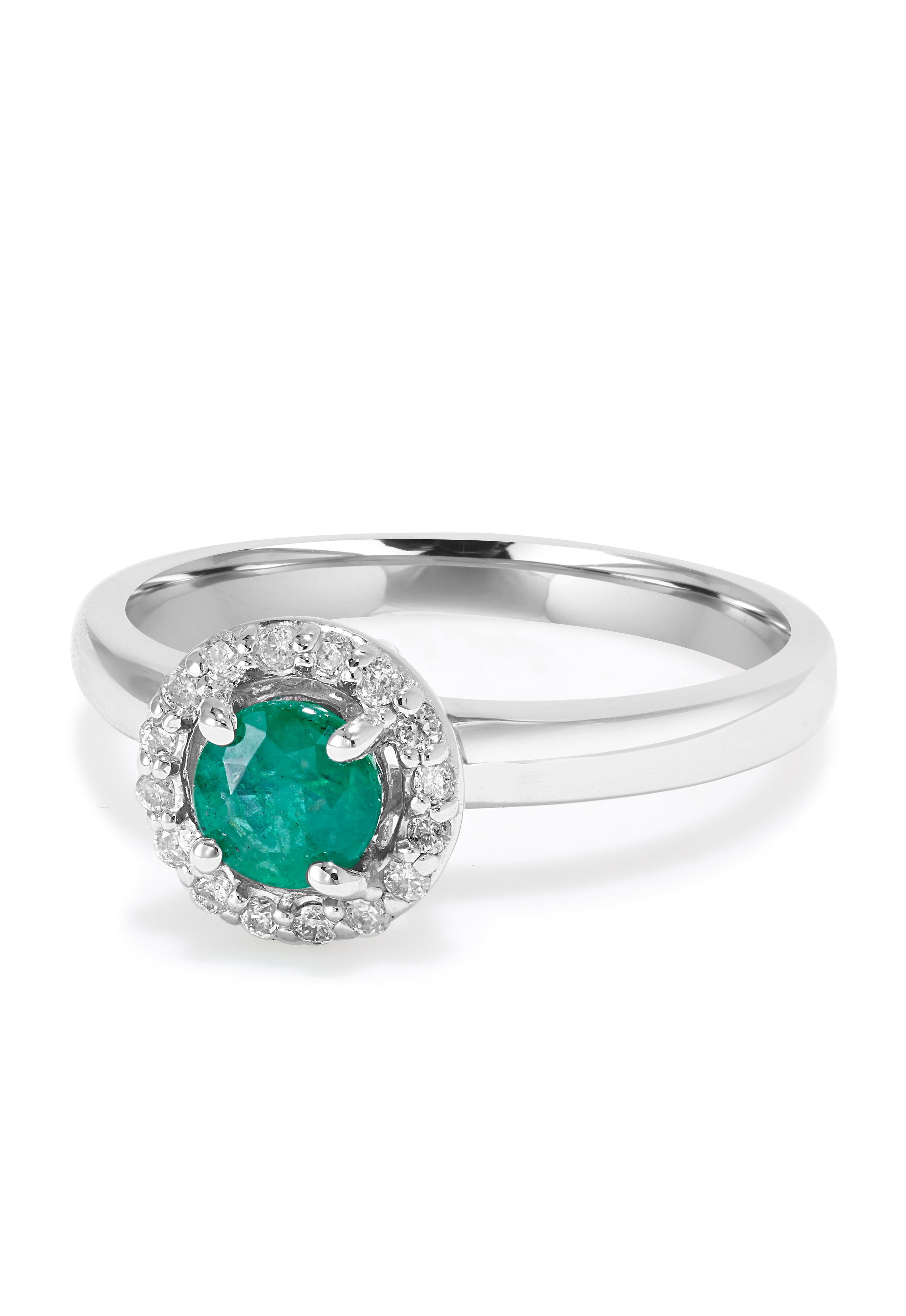 Brasilica 14K White Gold Emerald and Diamond Halo Ring, 0.60 TCW