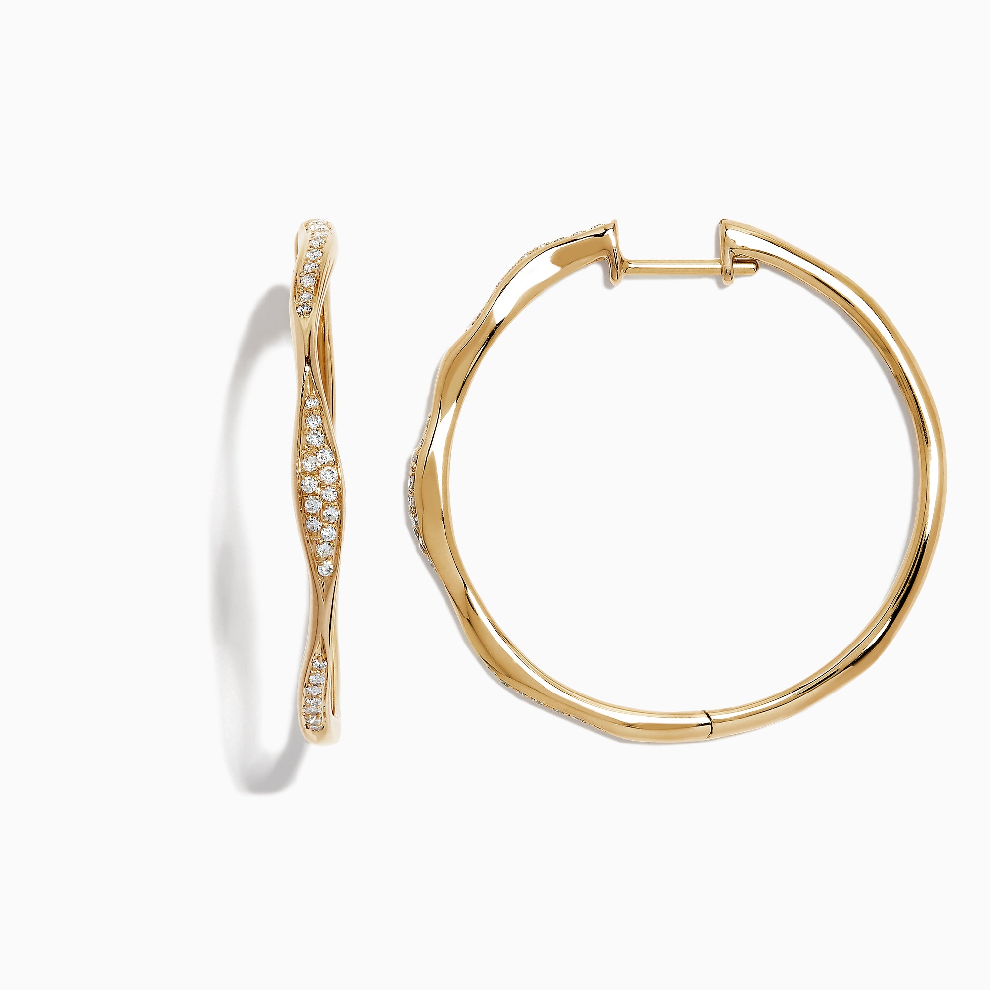 Effy D'Oro 14K Yellow Gold 1 1/4" Diamond Wave Hoop Earrings, 0.25 TCW