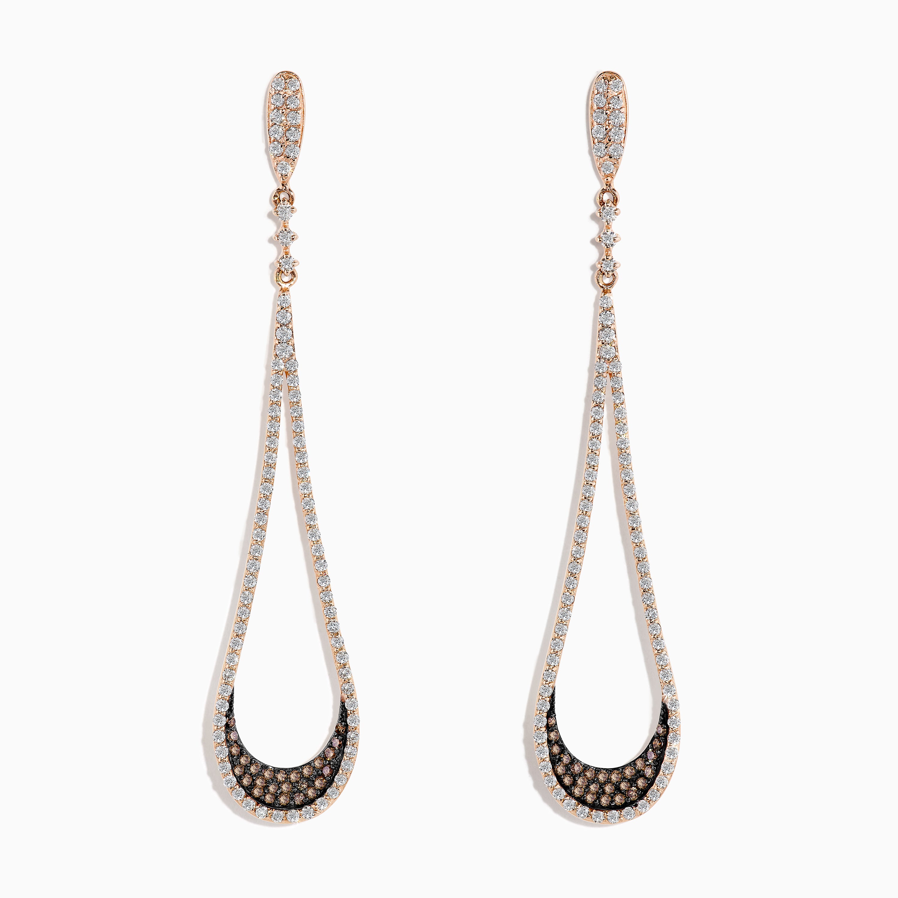 Effy Espresso 14K Rose Gold Brown and White Diamond Drop Earrings, 1.70 TCW