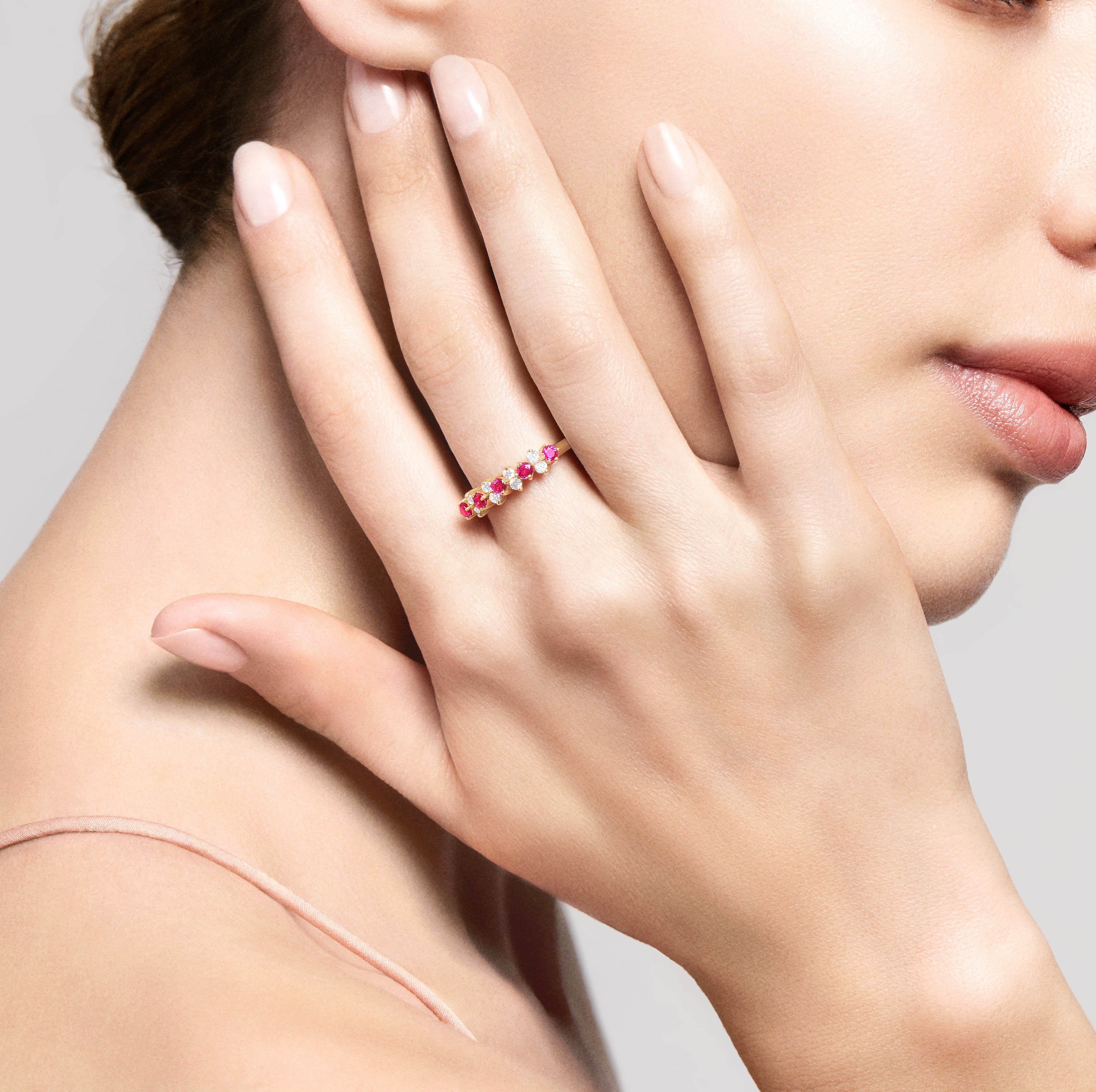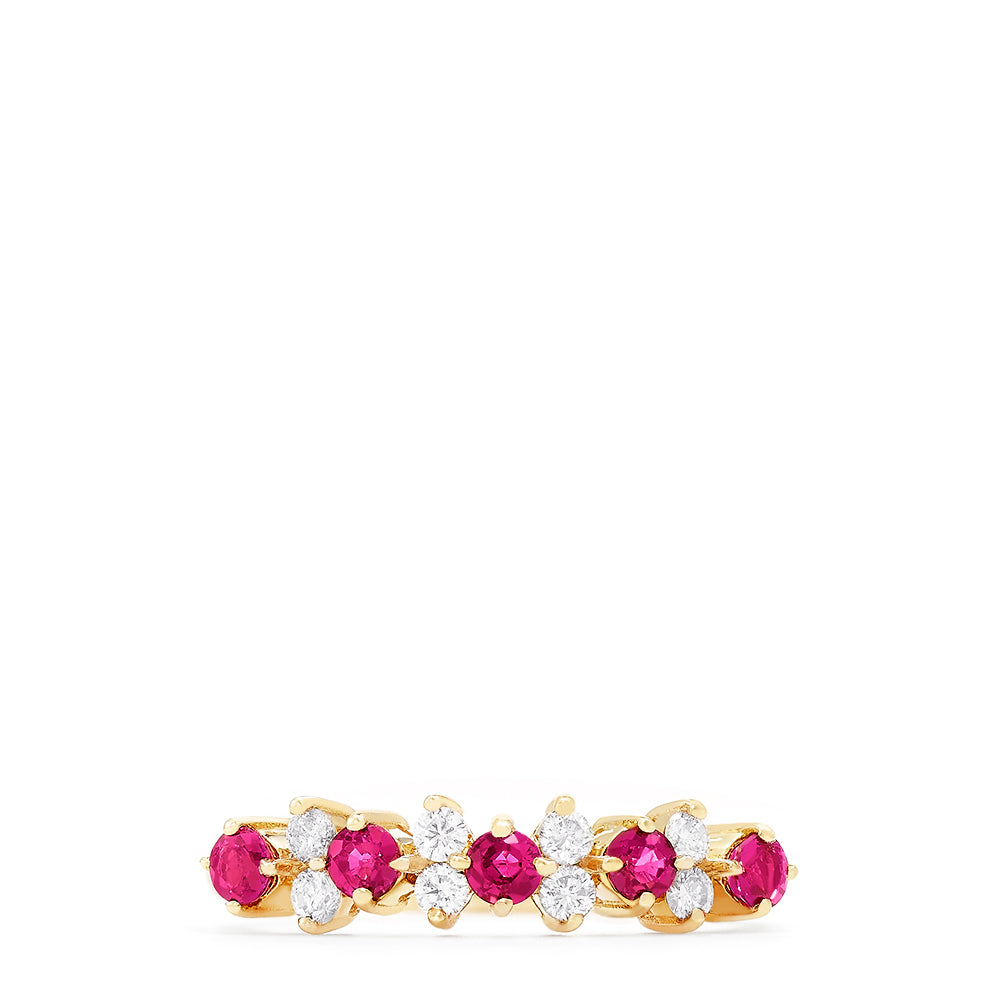 14K Yellow Gold Ruby and Diamond Band, 0.76 TCW
