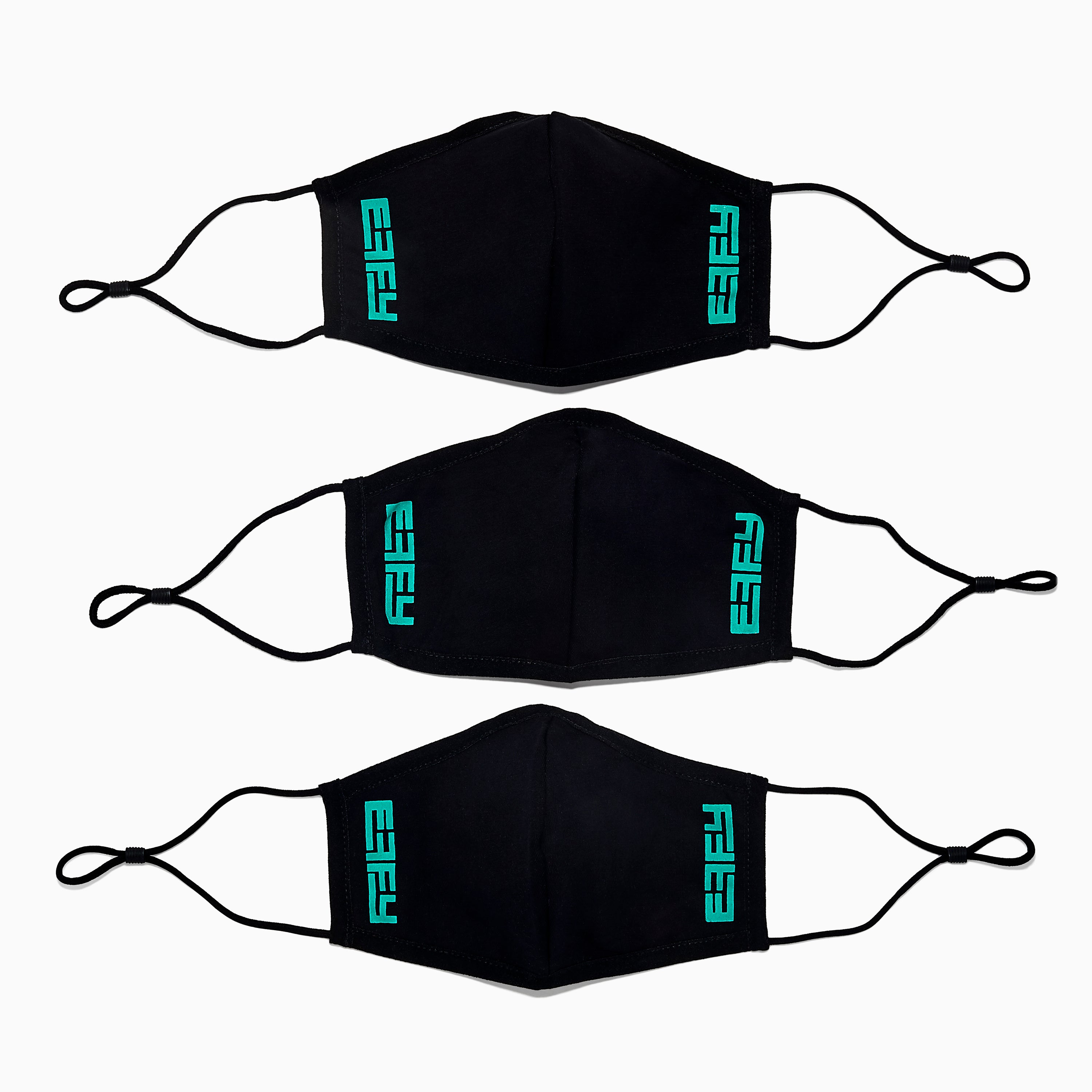 Knitted Face Mask - Adult 3 Pack - Black with Teal Logo