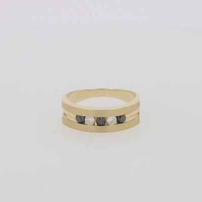 Mens 14K Yellow Gold Black and White Diamond Ring, 0.49 TCW
