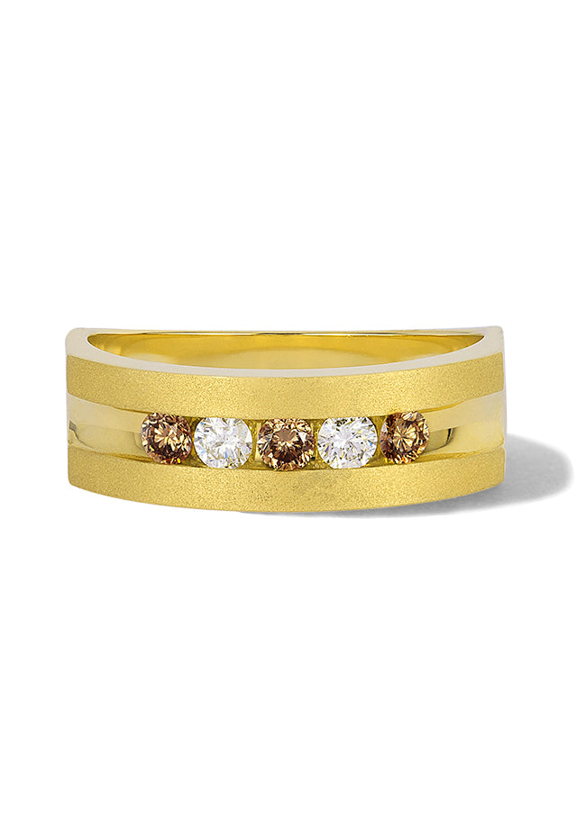Men's 14K Yellow Gold Espresso and White Diamond Ring, 0.49 TCW