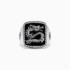 Effy Men's 925 Sterling Silver Onyx Dragon Dog Tag Pendant, 21.50 TCW