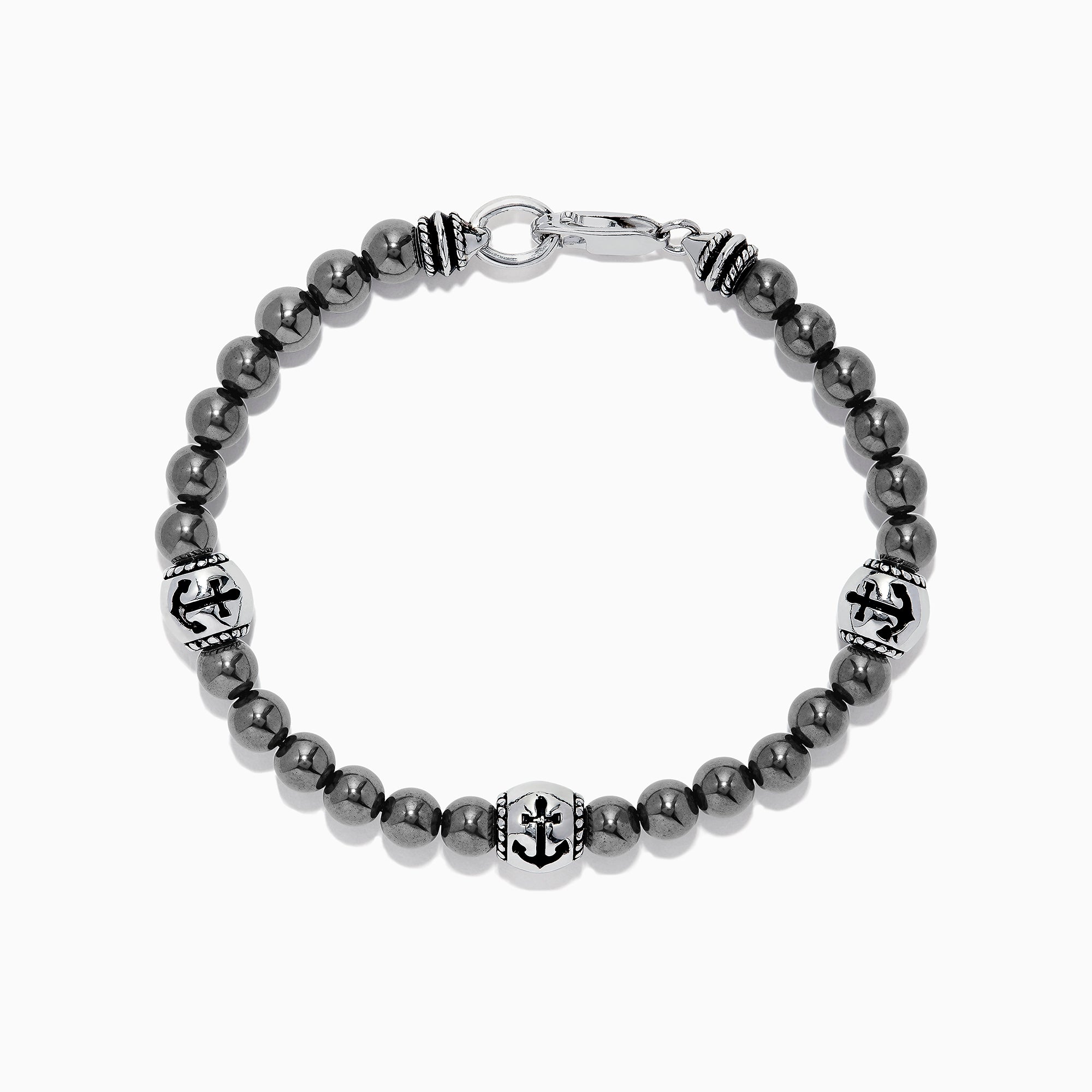 Effy Men's Sterling Silver Beaded Hematite Anchor Bracelet, 71.43 TCW